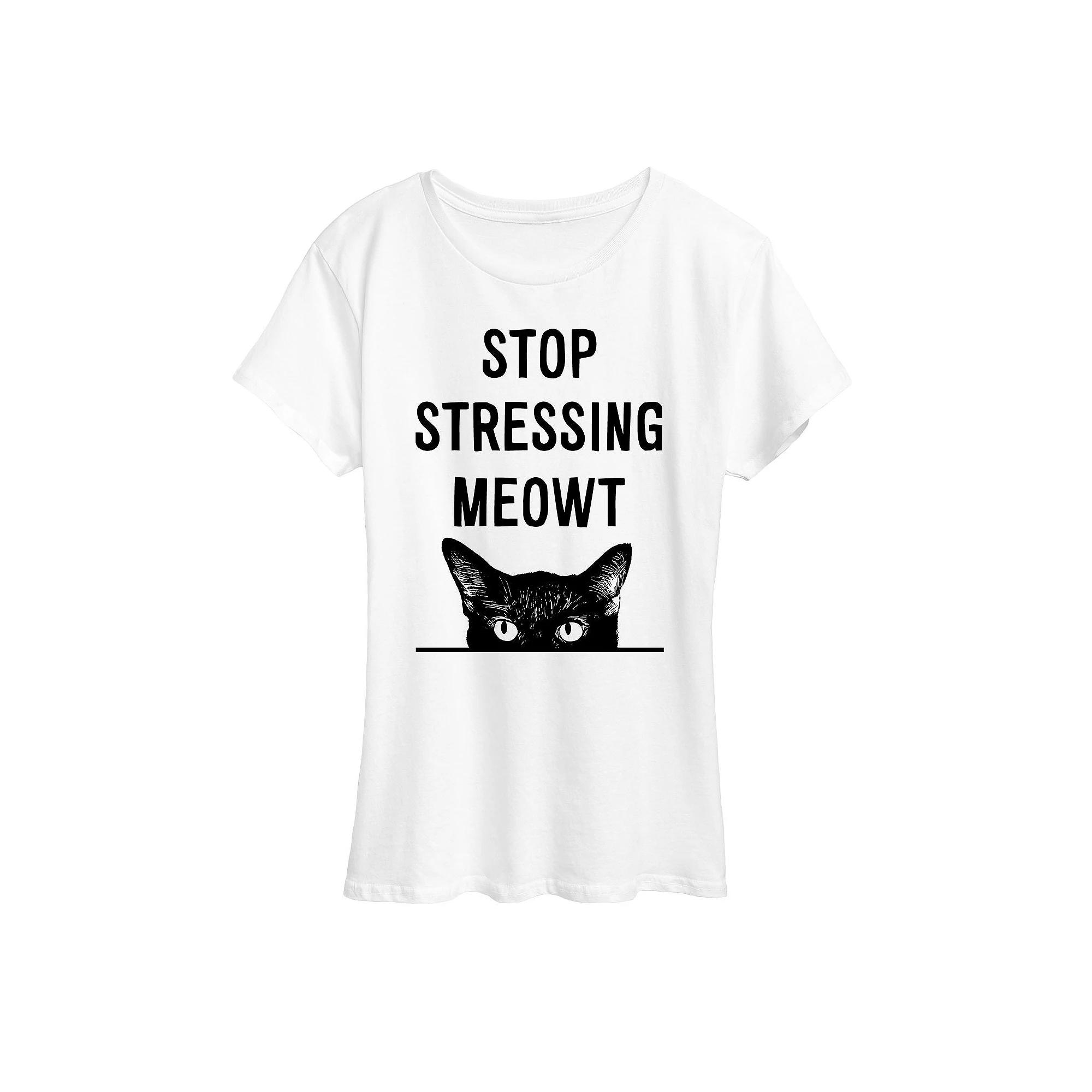 She will love showing off her style with this Womens Stop Stressing Meowt Graphic Tee. She will love showing off her style with this Womens Stop Stressing Meowt Graphic Tee. FEATURES Short sleeves CrewneckFABRIC & CARE Solid Color: Cotton ; Heather Colors: Cotton/Polyester Machine wash Imported Size: Large. Color: Dark Grey. Gender: female. Age Group: adult.