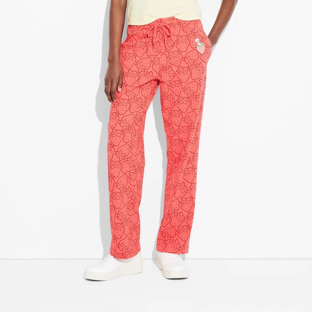 The Womens Strawberry Shortcake Graphic Lounge Pants in Red are perfect for relaxing in style. Featuring strawberry graphics, these pants are made from soft, lightweight fabric. With an easy fit and elastic waistband, theyre ideal for lounging at home, running errands or casual outings. The playful design adds a touch of fun to your casual wear collection.