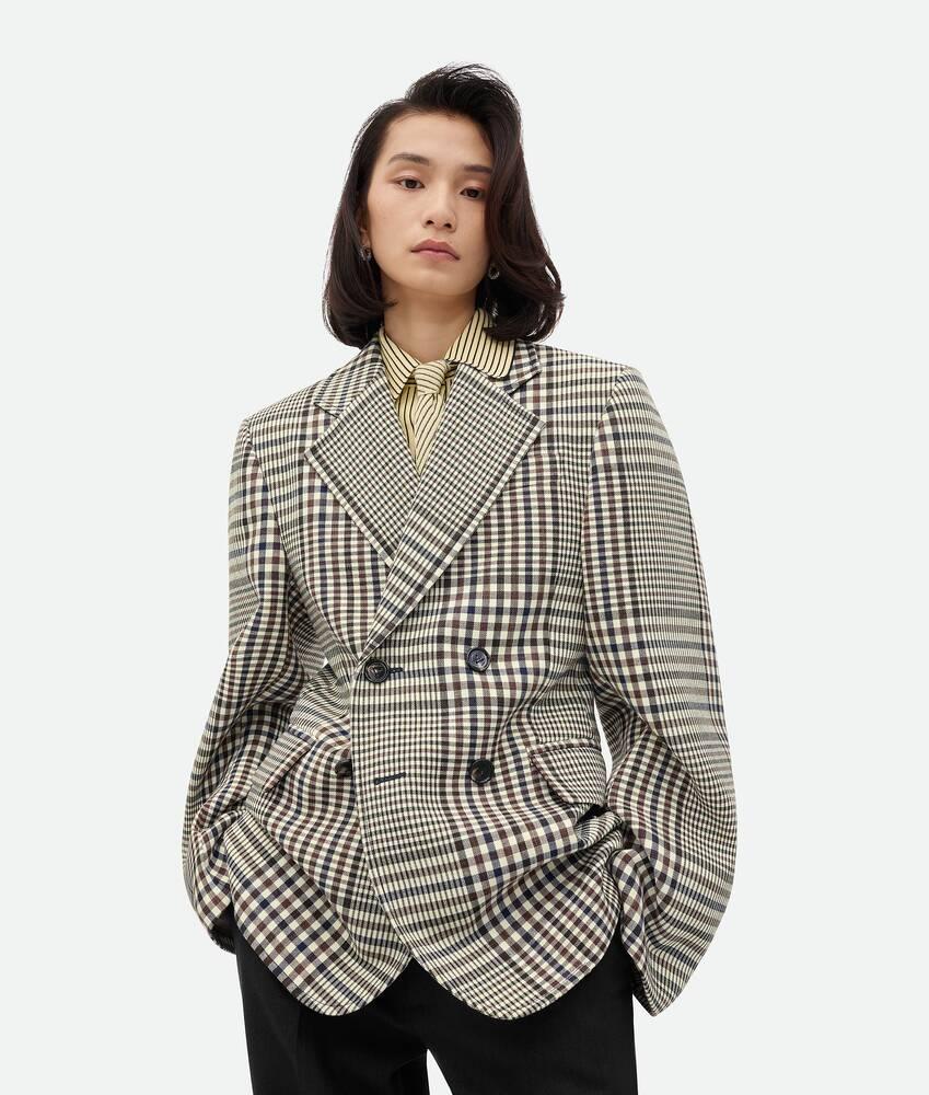 Women's Structured Check Cotton Jacket in Pollen/brown/navy