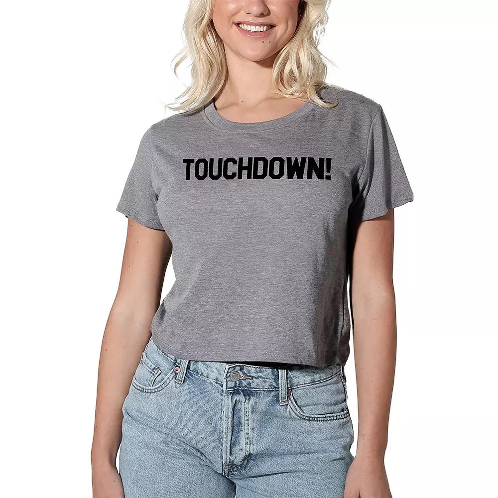 Give your wardrobe a refresh with this women's "Touchdown!" graphic crop top. Click on this WOMEN'S GUIDE to find the perfect fit and more!Give your wardrobe a refresh with this women's "Touchdown!" graphic crop top. Click on this WOMEN'S GUIDE to find the perfect fit and more!FEATURES Crewneck Short sleeves Graphic on chest Ultrasoft tri-blend constructionFABRIC & CARE Cotton, polyester, rayon Machine wash Imported Size: X Small. Color: Heather Grey. Gender: female. Age Group: kids.