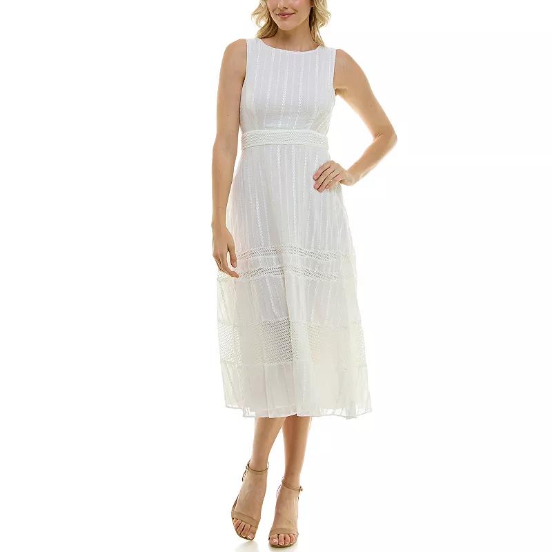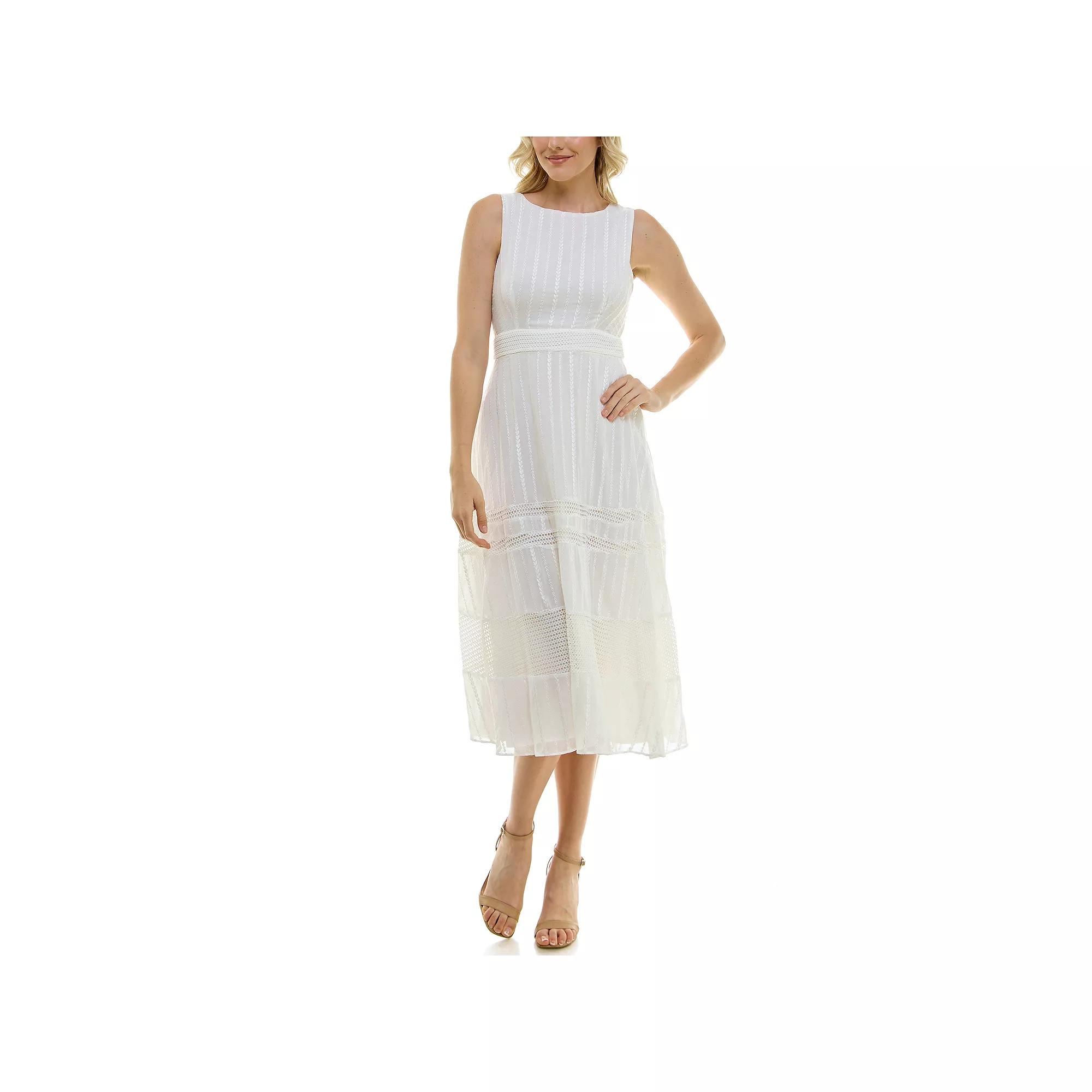 Show off your style with this womens Taylor boatneck embroidered midi dress. Click on this WOMENS GUIDE to find the perfect fit and more!Show off your style with this womens Taylor boatneck embroidered midi dress. Click on this WOMENS GUIDE to find the perfect fit and more!FEATURES Boatneck Sleeveless A-line silhouette Zipper back Straight hem Fully linedFIT & SIZING Fitted at bodice with waistband and flares out at hip 49 3/4-in. length from shoulder to hem Midi length hits below the knee Contour waistbandFABRIC & CARE Polyester Embroidery: rayon Lace: polyester, spandex Polyester lining Hand wash Imported Color: Ivory. Gender: female. Age Group: adult.