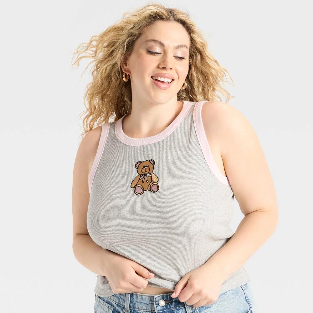 Add a dash of cuteness to your casual wardrobe with this Teddy Bear Graphic Tank Top. Made of soft, stretchy fabric, this sleeveless top moves with you for all-day comfort. This crewneck top is tailored in a standard fit, and it features an embroidered teddy bear design for a playful touch. Designed in a light gray hue, you can pair it with jeans, sweatpants or shorts.