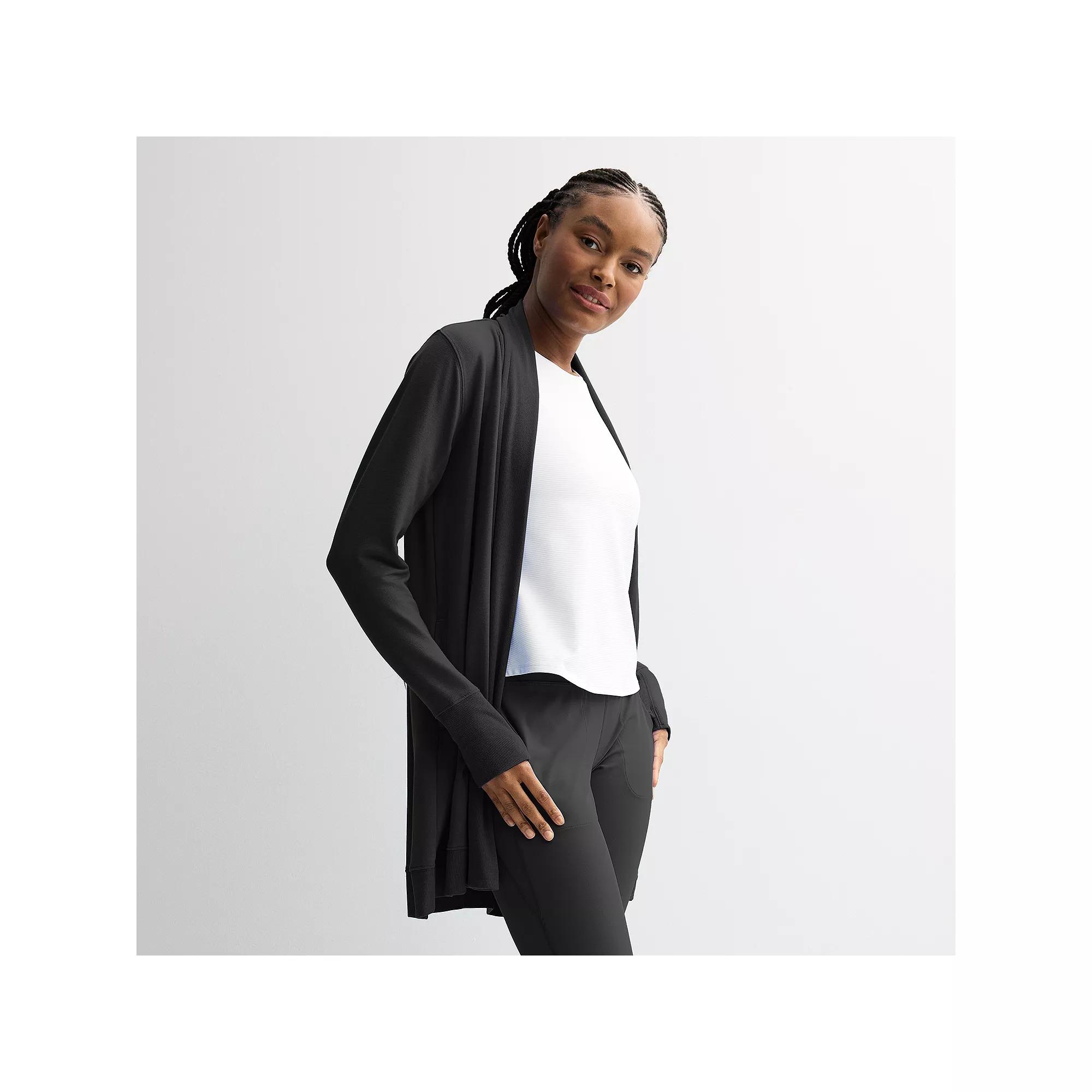 The Tek Gear French Terry Long Wrap provides a stylish layering option with soft French terry fabric, perfect for adding warmth and a touch of elegance to any casual outfit.Click on this WOMEN'S GUIDE to find the perfect fit and more!TECHNOLOGIES & FEATURES French Terry 2 side seam pockets Banded hem Crewneck Ribbed cuffs Long sleeves with thumbholesFIT & SIZING 37.5-in. length Regular fitFABRIC & CARE 63% Polyester, 34% Rayon, 3% Spandex Machine wash Imported Size: Large. Color: Mineral Black. Gender: female. Age Group: adult.