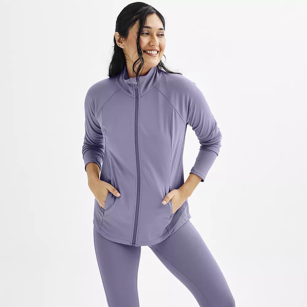 Keep yourself comfortable whether youre on the move or just staying in with this womens Tek Gear zip-front performance jacket. Keep yourself comfortable whether youre on the move or just staying in with this womens Tek Gear zip-front performance jacket. Moisture-wicking technology Jersey construction 2 zippered pockets Zipper front Long raglan sleeves with thumb-hole cuffsFIT & SIZING 25 1/2-in. approximate length from shoulder to hemFABRIC & CARE Polyester, spandex Machine wash Imported Size: Small. Color: Black. Gender: female. Age Group: adult.