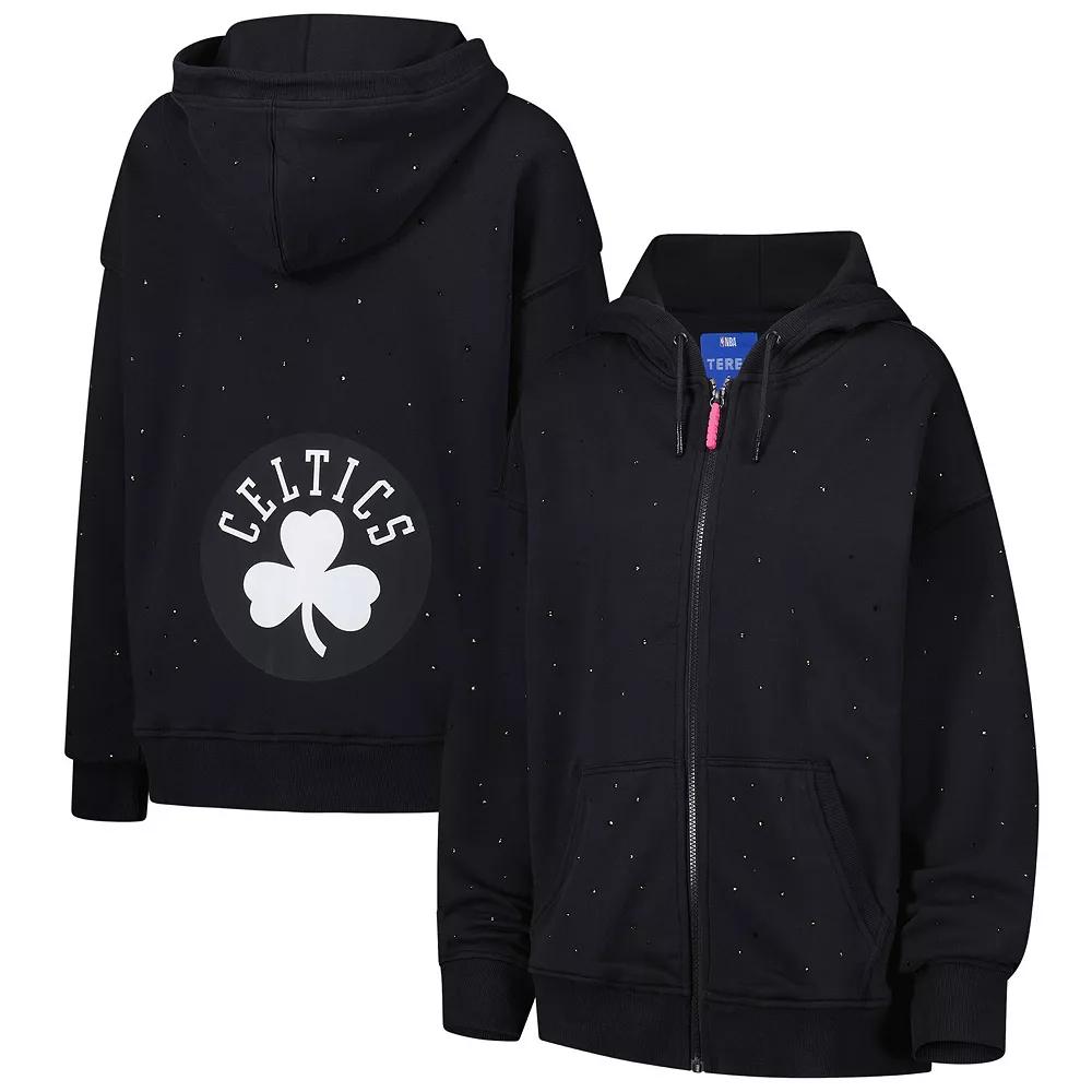 Add some sparkle to your look with this Boston Celtics Oversized Allover Gemstone Full-Zip Hoodie from Terez. It features dazzling rhinestone embellishments that accentuate the team logo on the back. Cozy fleece lining provides extra softness and warmth, while dropped shoulders give this Boston Celtics hoodie a trendy design and relaxed feel.Add some sparkle to your look with this Boston Celtics Oversized Allover Gemstone Full-Zip Hoodie from Terez. It features dazzling rhinestone embellishments that accentuate the team logo on the back. Cozy fleece lining provides extra softness and warmth, while dropped shoulders give this Boston Celtics hoodie a trendy design and relaxed feel.PRODUCT FEATURESBrand: TerezHeat-sealed team logo on backOversized fitMaterial: 100% Pima CottonHoodedHand wash, dry flatLong sleeveFull ZipMidweight hoodie suitable for moderate temperaturesImportedDropped shoulders provide a trendy look and relaxed feelRhinestone embellishmentsTwo front pockets offer small-item storageFleece lining delivers added comfortOfficially licensed Color: Black. Gender: female. Age Group: adult.