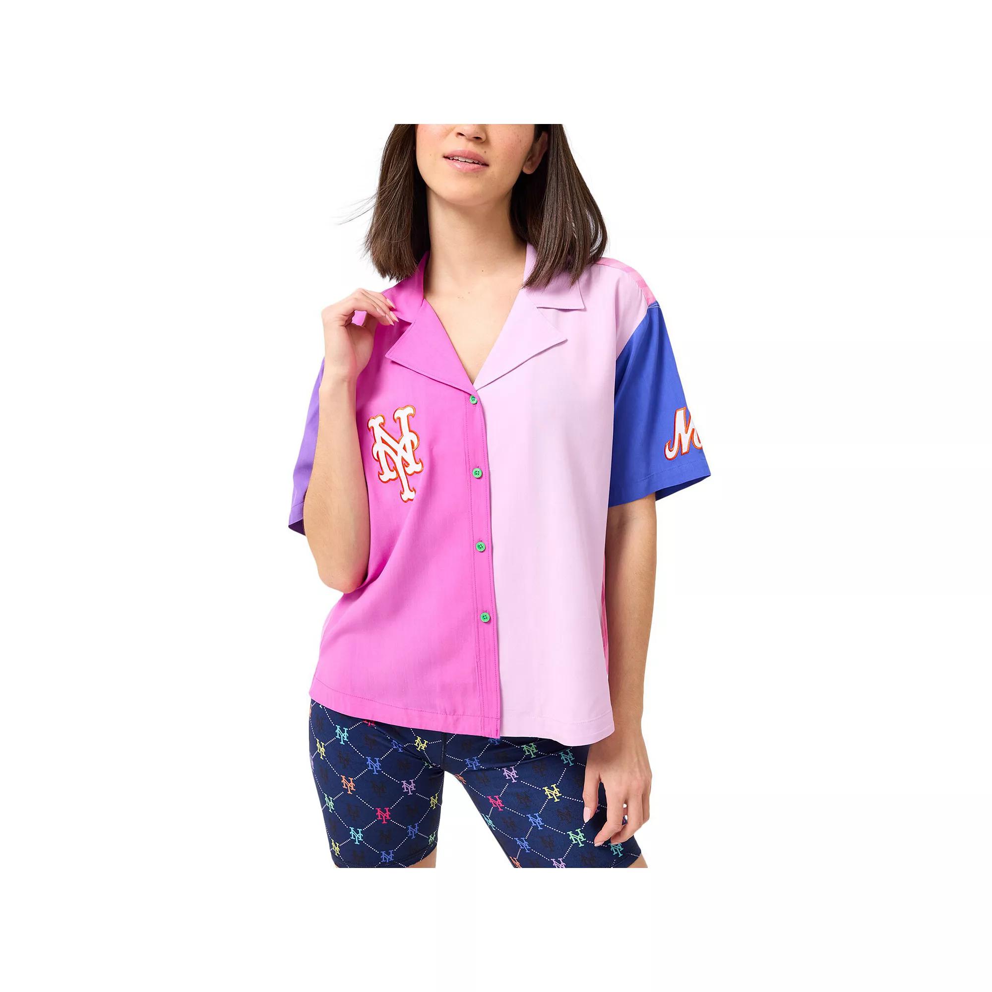 Show off your sense of fashion on game day in this New York Mets button-up shirt. Its color-block design by Terez features New York Mets details embroidered on the front, left sleeve and back with a striped pattern. The longer hem creates a more comfortable fit and feel.Show off your sense of fashion on game day in this New York Mets button-up shirt. Its color-block design by Terez features New York Mets details embroidered on the front, left sleeve and back with a striped pattern. The longer hem creates a more comfortable fit and feel.PRODUCT FEATURESOfficially licensedShort sleeveMachine wash, line dryRounded droptail hemEmbroidered fabric appliquesImportedDropped shouldersFull-button frontMaterial: 100% RayonBrand: TerezFold-down collar Color: Pink. Gender: female. Age Group: adult. Material: COTTON.