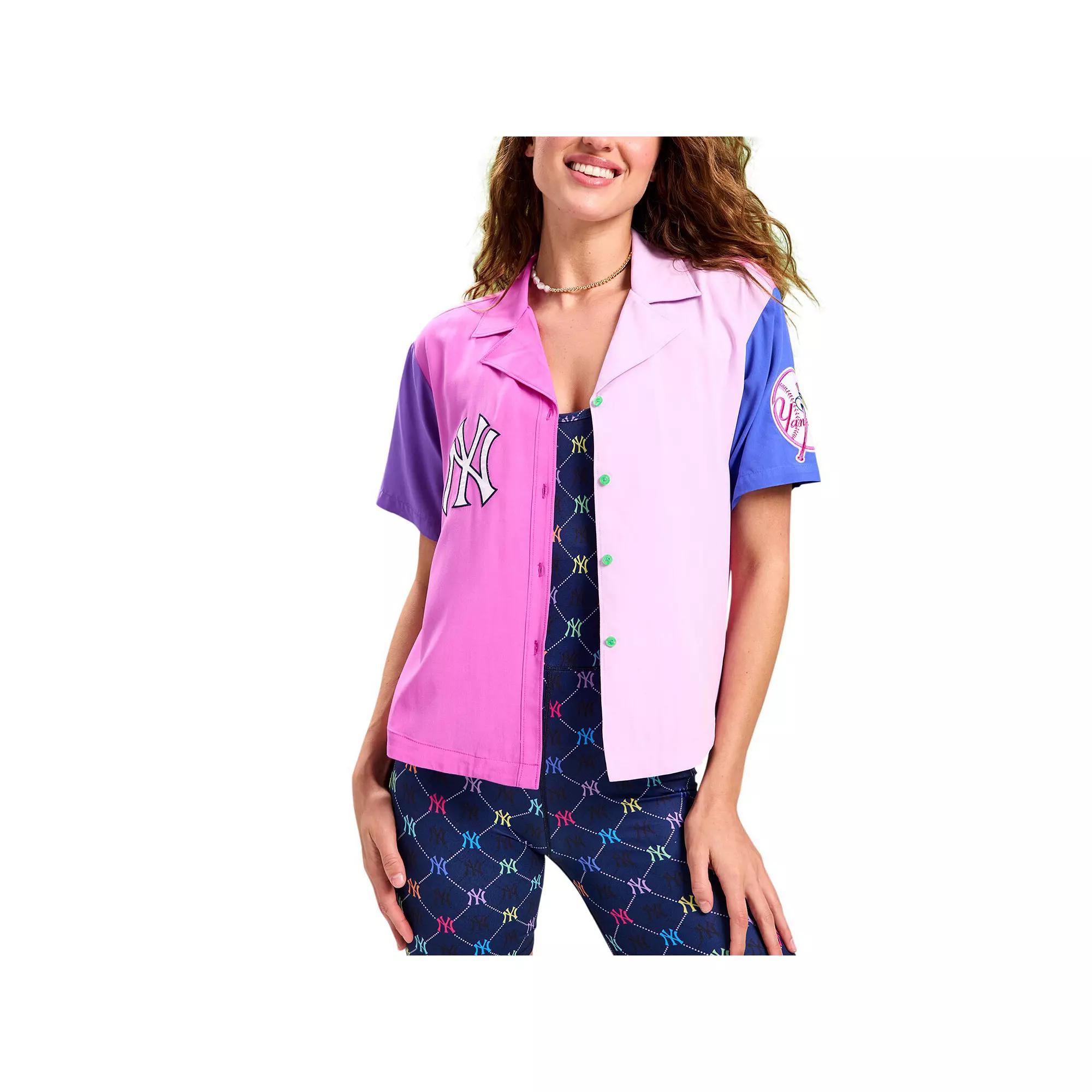 Show off your sense of fashion on game day in this New York Yankees button-up shirt. Its color-block design by Terez features New York Yankees details embroidered on the front, left sleeve and back with a striped pattern. The longer hem creates a more comfortable fit and feel.Show off your sense of fashion on game day in this New York Yankees button-up shirt. Its color-block design by Terez features New York Yankees details embroidered on the front, left sleeve and back with a striped pattern. The longer hem creates a more comfortable fit and feel.PRODUCT FEATURESShort sleeveRounded droptail hemFull-button frontOfficially licensedMaterial: 100% RayonEmbroidered fabric appliquesFold-down collarDropped shouldersImportedBrand: TerezMachine wash, line dry Color: Pink. Gender: female. Age Group: adult. Material: COTTON.