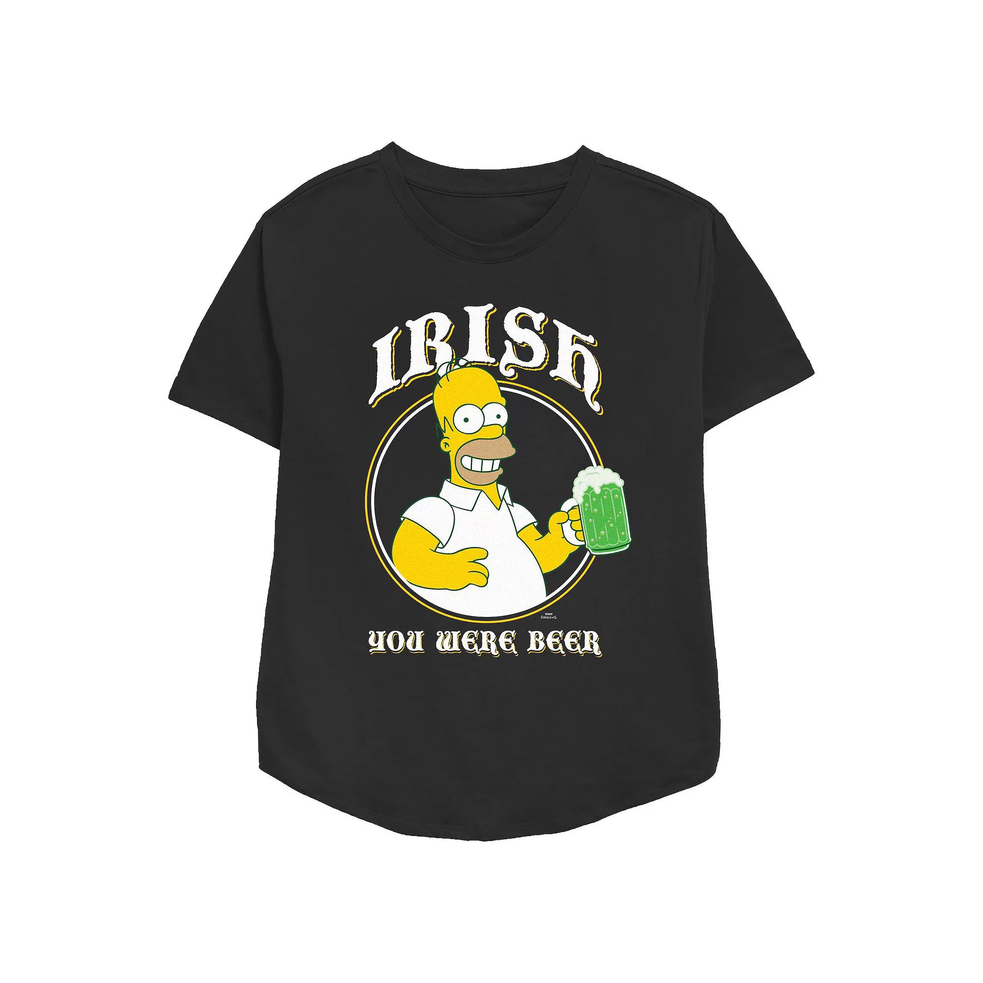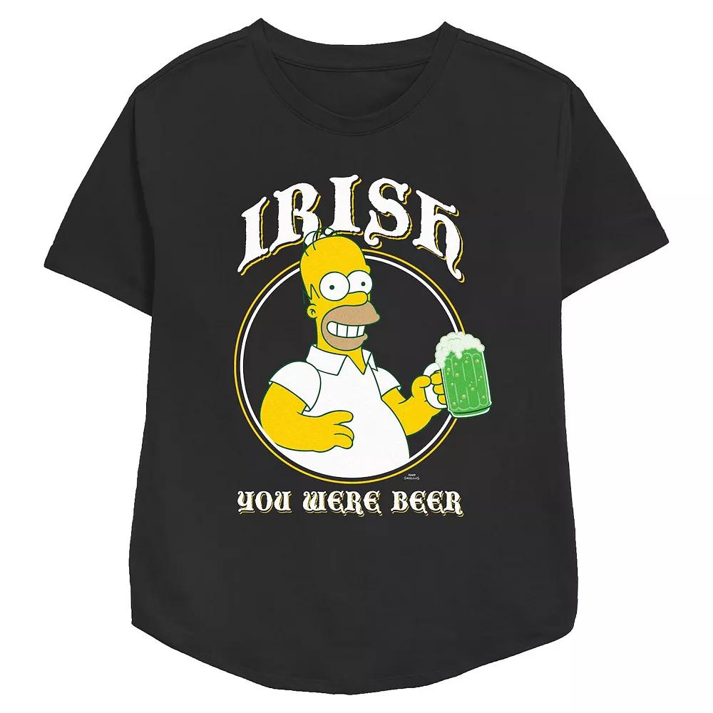 Shell love celebrating St. Patricks Day in this Womens The Simpsons Homer Simpson Irish You Were Beer Relaxed Fit Graphic Tee.FEATURES Crewneck Short sleevesFABRIC & CARE Cotton, polyester Machine wash Imported Size: Large. Color: Black. Gender: female. Age Group: adult.