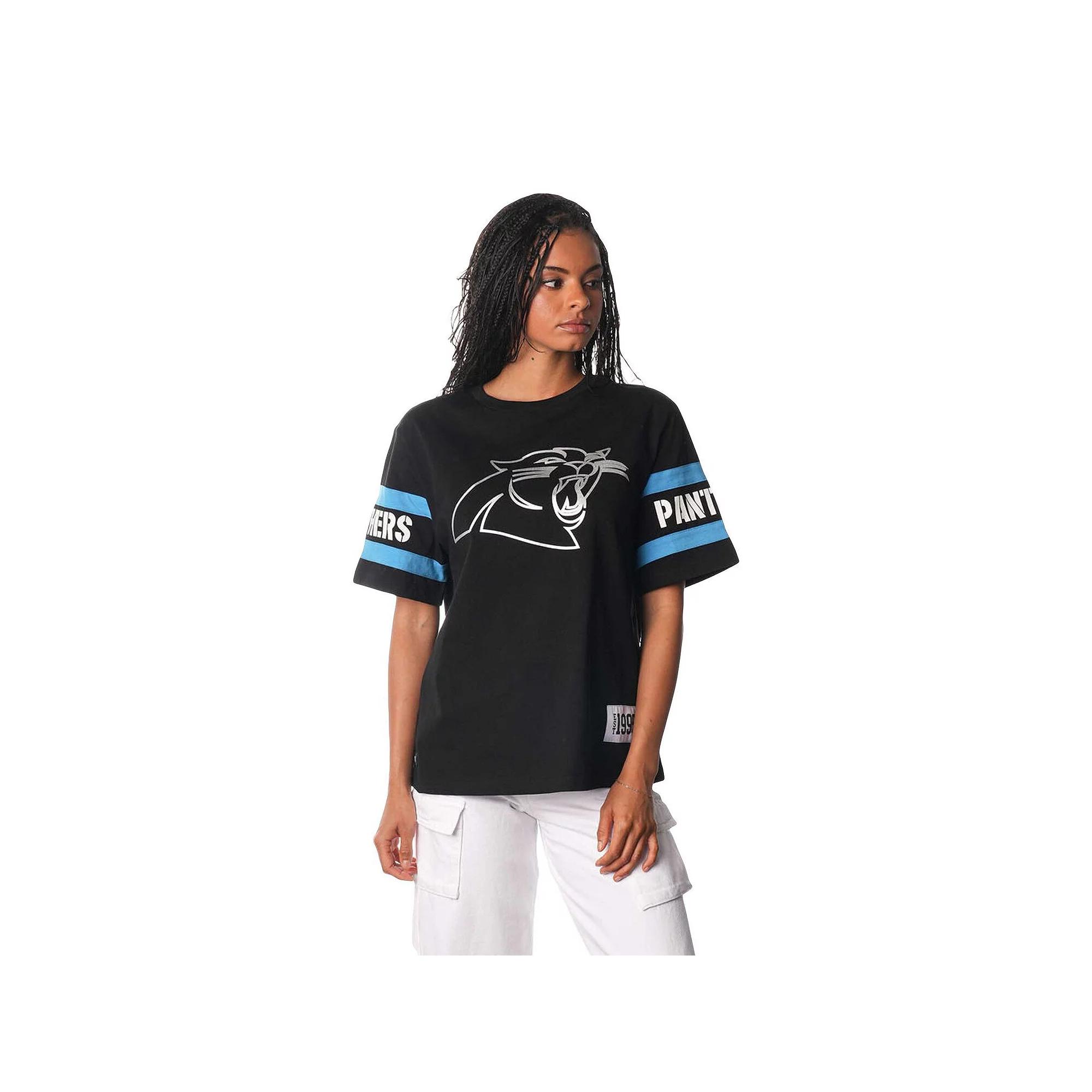 Embrace effortless style while repping your Carolina Panthers with The Wild Collective Drop Shoulder T-Shirt. This stylish tee features dropped shoulders for a loose, relaxed, oversized fit and a crew neck for a classic look and feel. Plus, the large team logo printed on the front lets everyone know who youre rooting for on game day.Embrace effortless style while repping your Carolina Panthers with The Wild Collective Drop Shoulder T-Shirt. This stylish tee features dropped shoulders for a loose, relaxed, oversized fit and a crew neck for a classic look and feel. Plus, the large team logo printed on the front lets everyone know who youre rooting for on game day.PRODUCT FEATURESMachine wash with garment inside out, tumble dry lowOfficially licensedBrand: The Wild CollectiveShort sleeveImportedSewn-on woven tag at bottom left hemDropped shoulders for a loose, relaxed, oversized fitMaterial: 100% CottonSewn-on stripes with team wordmark in centerCrew neck for a classic look and feelLarge team logo printed on frontBack neck with printed logo Color: Black. Gender: female. Age Group: adult.