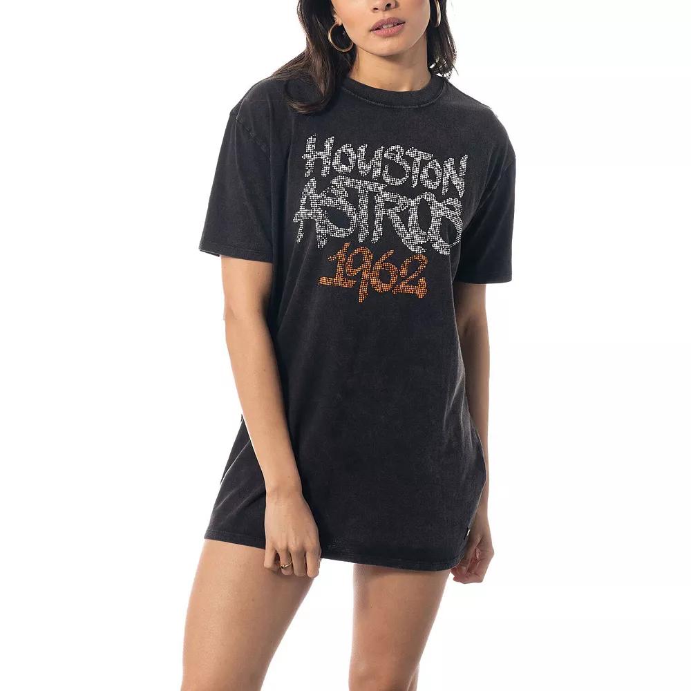 Step out in Houston Astros style with this T-shirt dress from The Wild Collective. It features the teams name and founding year in street-inspired graphics. Add a casual finish to any fan look with this sleek Houston Astros dress.Step out in Houston Astros style with this T-shirt dress from The Wild Collective. It features the teams name and founding year in street-inspired graphics. Add a casual finish to any fan look with this sleek Houston Astros dress.Machine wash, tumble dry lowImportedScreen print graphicsOfficially licensedWashed fabricMaterial: 100% CottonBrand: The Wild CollectiveCrew neckShort sleeve Size: XS. Color: Black. Gender: female. Age Group: adult.