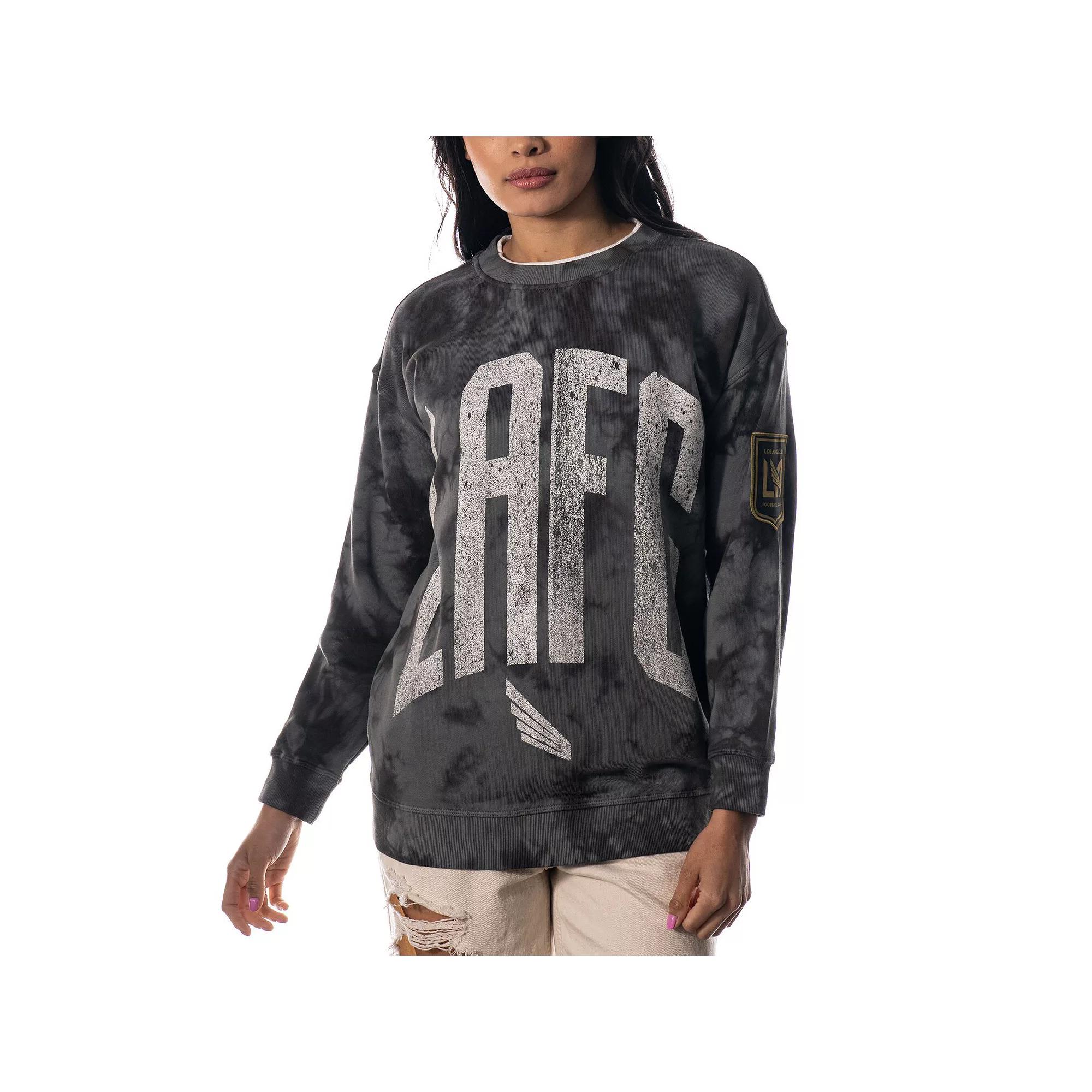 Stylishly rep the LAFC in this Double Collar sweatshirt from The Wild Collective. Designed with cozy fleece lining, this midweight pullover is perfect for keeping warm on chilly game days. The classic LAFC details, distressed graphics and groovy cloud-dye pattern instantly elevate any outfit you put together.Stylishly rep the LAFC in this Double Collar sweatshirt from The Wild Collective. Designed with cozy fleece lining, this midweight pullover is perfect for keeping warm on chilly game days. The classic LAFC details, distressed graphics and groovy cloud-dye pattern instantly elevate any outfit you put together.PRODUCT FEATURESMachine wash with garment inside out, tumble dry lowPulloverOfficially licensedEmbroidered fabric appliqueDropped shouldersImportedFleece liningRib-knit collar, cuffs & waist hemDistressed screen print graphicsMaterial: 55% Cotton/40% Modal/5% SpandexLong sleeveBrand: The Wild CollectiveMidweight sweatshirt suitable for moderate temperatures Color: Black. Gender: female. Age Group: adult.