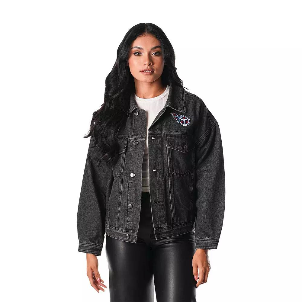 Show off your Tennessee Titans spirit with this Denim Sequin Fringe Button-Up Jacket from The Wild Collective. This stylish jacket is perfect for milder game days, keeping you comfortable while you cheer on the Tennessee Titans. The embroidered team logo on the left chest and sequin fringe detail on the back add a touch of glam to your game-day attire.Show off your Tennessee Titans spirit with this Denim Sequin Fringe Button-Up Jacket from The Wild Collective. This stylish jacket is perfect for milder game days, keeping you comfortable while you cheer on the Tennessee Titans. The embroidered team logo on the left chest and sequin fringe detail on the back add a touch of glam to your game-day attire.PRODUCT FEATURESOfficially licensedFull-button frontMaterial: 100% CottonSequin fringe detail across back of sleeves and upper backStand-up collarLightweight jacket suitable for mild temperaturesEmbroidered team logo on left chestLong sleeveTwo buttoned chest pockets for storing small itemsTwo front pocketsMachine wash, tumble dry lowBrand: The Wild CollectiveImported Color: Black. Gender: female. Age Group: adult.