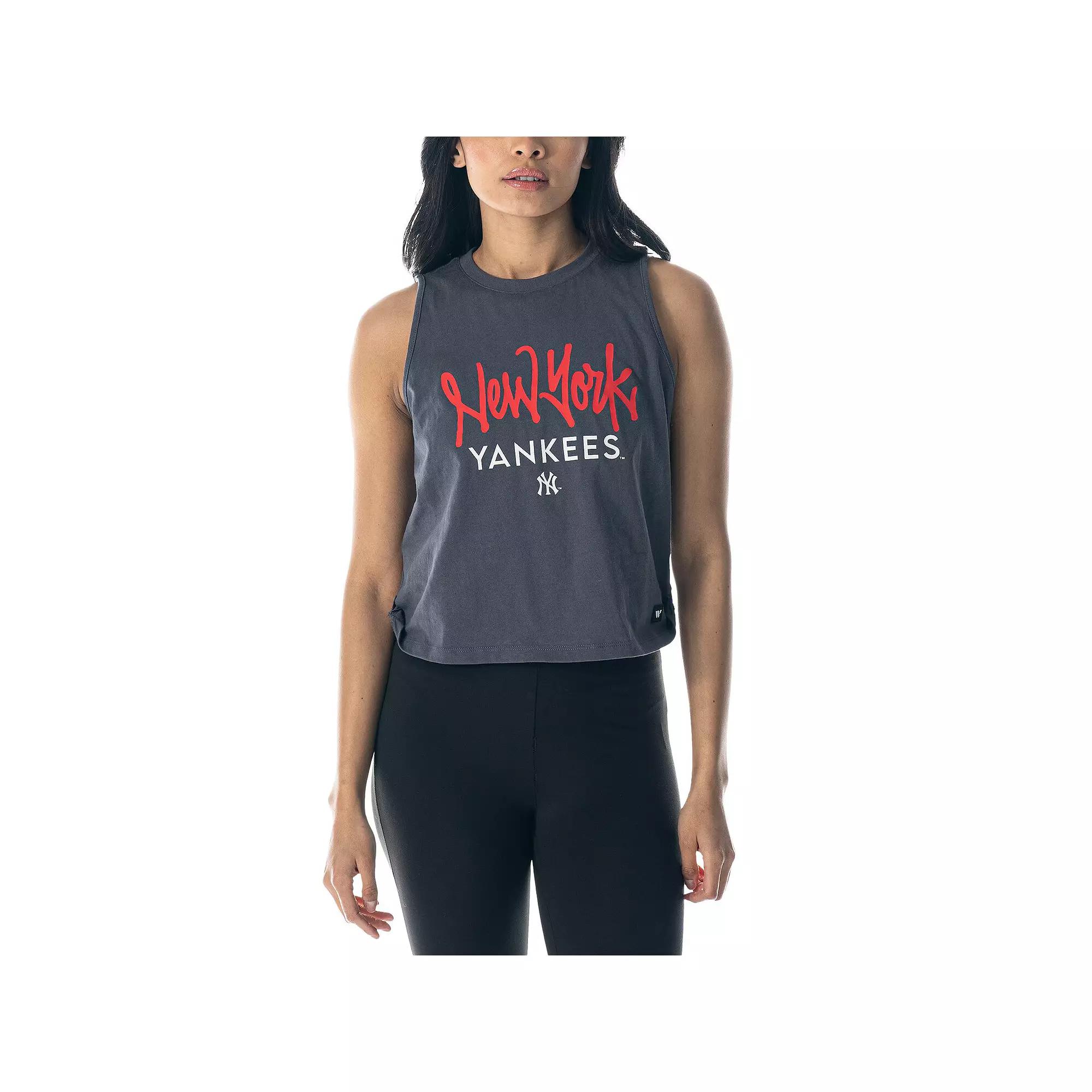 Take to game day or your next gym session with a bold burst of New York Yankees flair by snagging this Side Knot tank top from The Wild Collective. This spirited tank features a team wordmark printed across the torso and knots on the side hem for a cute finish. Reach for this top when you want to show your New York Yankees pride in casual, comfortable style.Take to game day or your next gym session with a bold burst of New York Yankees flair by snagging this Side Knot tank top from The Wild Collective. This spirited tank features a team wordmark printed across the torso and knots on the side hem for a cute finish. Reach for this top when you want to show your New York Yankees pride in casual, comfortable style.PRODUCT FEATURESOfficially licensedScreen print graphicsKnotted side hemCrew neckMaterial: 100% CottonMachine wash, tumble dry lowImportedSleevelessBrand: The Wild Collective Color: Charcoal. Gender: female. Age Group: adult.
