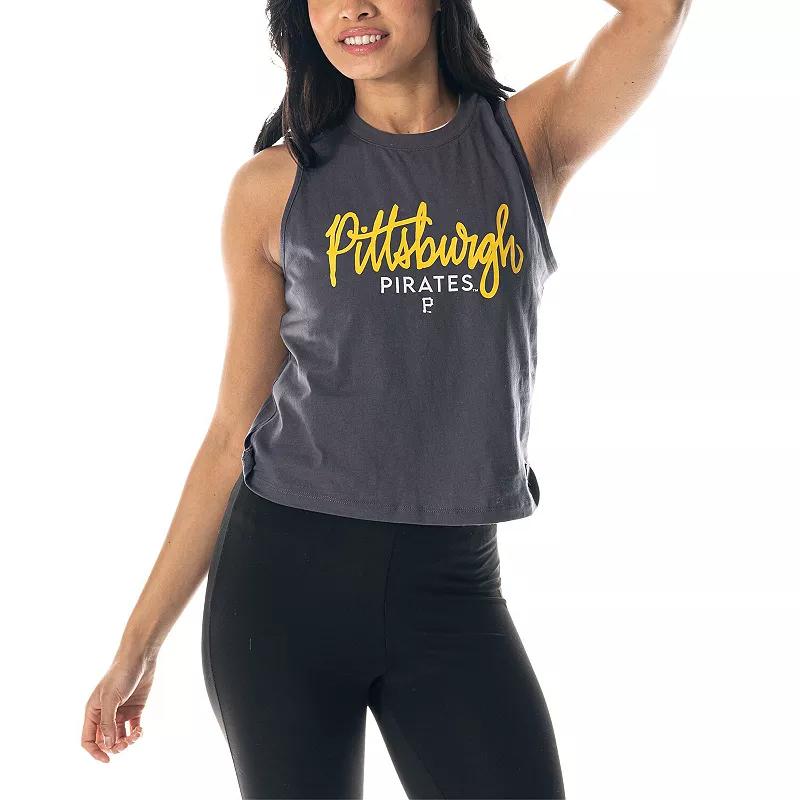 Take to game day or your next gym session with a bold burst of Pittsburgh Pirates flair by snagging this Side Knot tank top from The Wild Collective. This spirited tank features a team wordmark printed across the torso and knots on the side hem for a cute finish. Reach for this top when you want to show your Pittsburgh Pirates pride in casual, comfortable style.Take to game day or your next gym session with a bold burst of Pittsburgh Pirates flair by snagging this Side Knot tank top from The Wild Collective. This spirited tank features a team wordmark printed across the torso and knots on the side hem for a cute finish. Reach for this top when you want to show your Pittsburgh Pirates pride in casual, comfortable style.PRODUCT FEATURESSleevelessBrand: The Wild CollectiveScreen print graphicsOfficially licensedImportedMaterial: 100% CottonCrew neckMachine wash, line dryKnotted side hem Size: 2X. Color: PIR CHARCO. Gender: female. Age Group: adult.