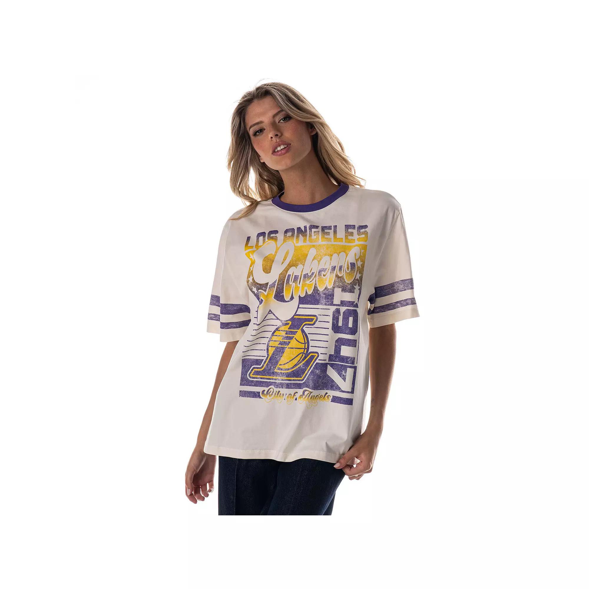Show off your timeless Los Angeles Lakers pride with this Vintage Drop Shoulder Oversized Boyfriend T-Shirt from The Wild Collective. Designed with dropped shoulders for a loose, relaxed, oversized fit, this tee offers effortless style and comfort. The distressed screen print team graphics add a vintage touch, making it a standout piece in any Los Angeles Lakers fan's wardrobe. Imported. Short sleeve. Distressed screen print team graphics. Brand: The Wild Collective. Material: 65% Cotton/35% Polyester. Dropped shoulders for a loose, relaxed, oversized fit. Machine wash, tumble dry low. Officially licensed. Color: Beige. Gender: unisex. Age Group: adult.