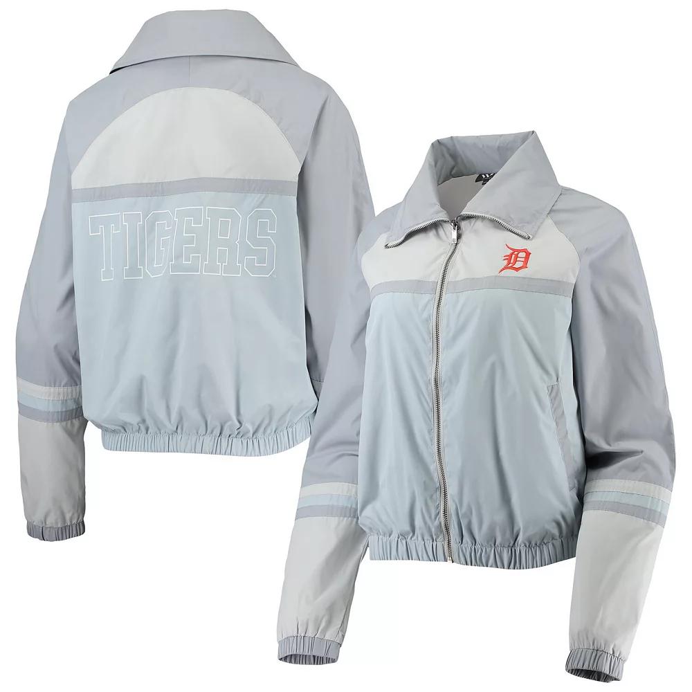 Women-owned brand The Wild Collective brings you a piece of fashionable team gear with this Detroit Tigers Colorblock Track jacket. It features raglan sleeves, a stand-up collar and elastic cuffs and hem for an aesthetic look. The heat-sealed Detroit Tigers graphics and bold colorblock design are the finishing touches for this trendy jacket.