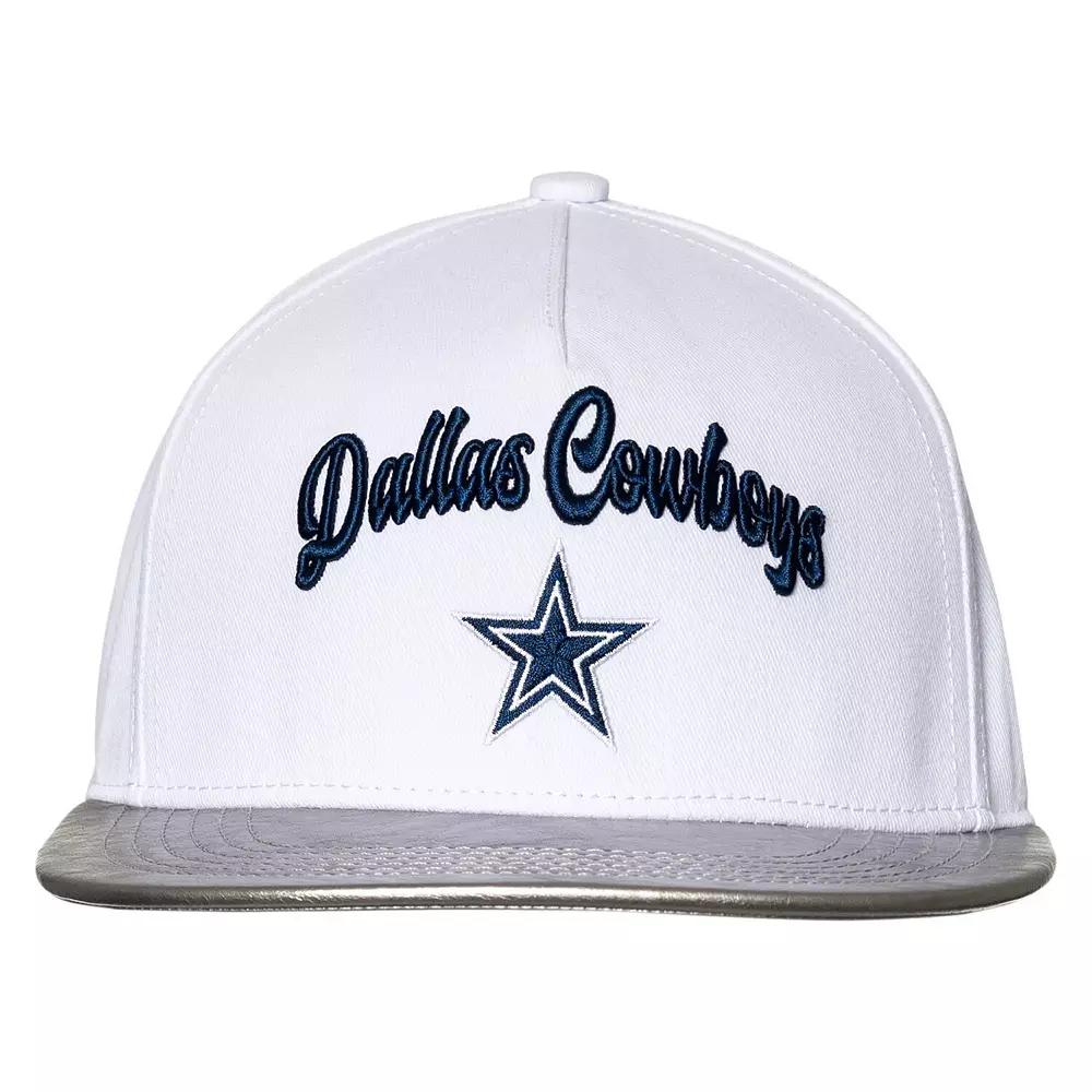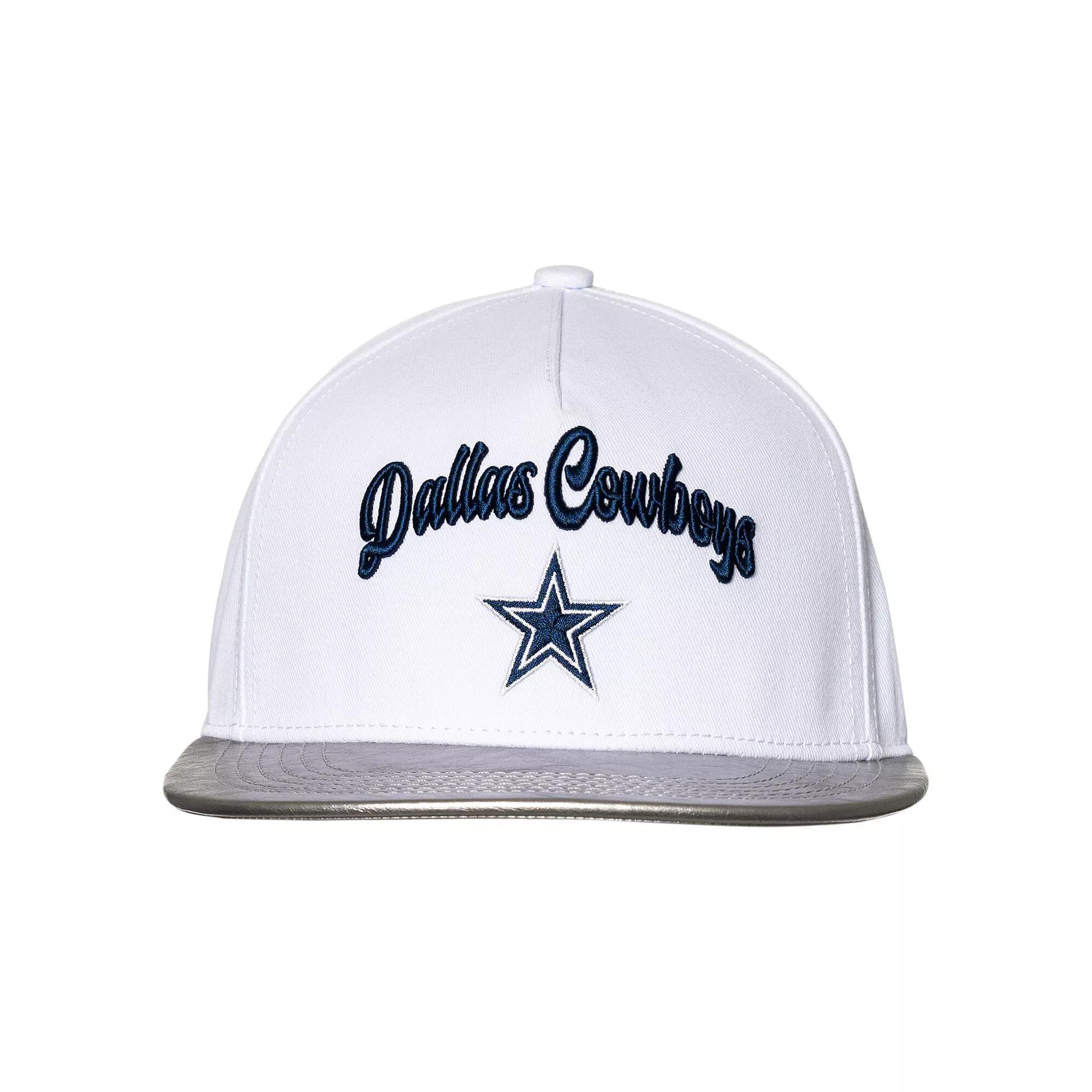 Show off your distinct sense of style while proclaiming your Dallas Cowboys fandom with this trendy snapback from The Wild Collective. The solid front panel provides a clean backdrop for the embroidered, stylized wordmark and team logo, both rendered with eye-catching raised detail. Mid and rear panels with eyelets offer enhanced breathability, keeping you comfortable whether you're at the game or out and about. The fashionably colored silver brim adds a touch of modern flair, ensuring you stand out from the crowd with a unique and fashionable twist. Material: 100% Cotton. Mid and rear panels with eyelets. Fashionably colored silver brim. Structured fit. Brand: The Wild Collective. High Crown. Officially licensed. Flat bill with ability to curve. Wipe clean with a damp cloth. Imported. Embroidered, stylized wordmark and team logo with raised detail. Solid front panel. Snapback. Size: One Size. Color: White. Gender: female. Age Group: adult.