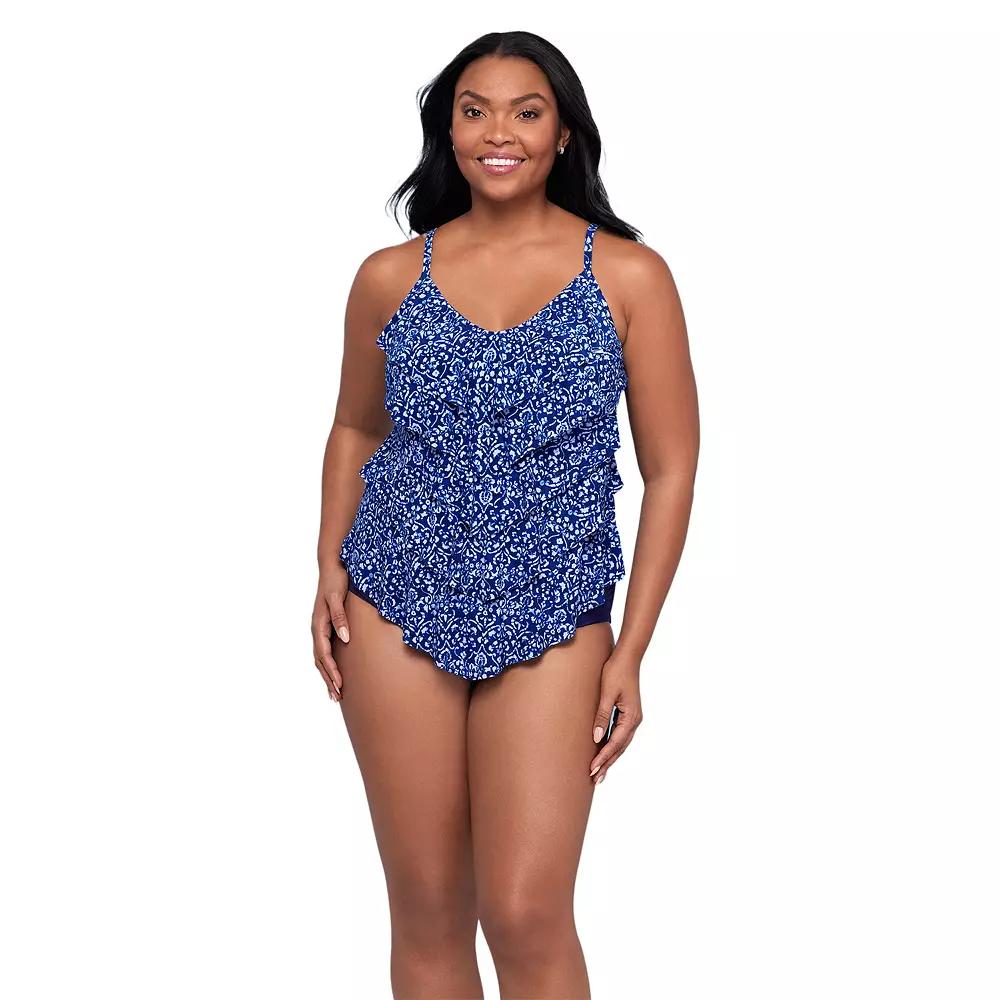 Dive into summer with the effortlessly chic Trimshaper swim top that combines sculpting support and a smooth silhouette. Its playful ruffled design adds a splash of fun, ensuring you feel fabulous while making waves at the beach or poolside. Click on this WOMEN'S GUIDE to find the perfect fit and more! - https://www.kohls.com/feature/womens-fit-guide.jsp. FEATURES: Sculpt, support, and smooth construction, Soft bra cups. FIT & SIZE: Layered hem. MATERIAL & CARE: Body: polyester, spandex, Lining: polyester, Partially lined, Hand wash and line dry. DETAILS: No closure - pullover styling, Wireless, Adjustable straps, Moderate coverage, V-neck, Sleeveless, Imported. Size: 18. Color: Blue. Gender: female. Age Group: adult. Material: NONE.
