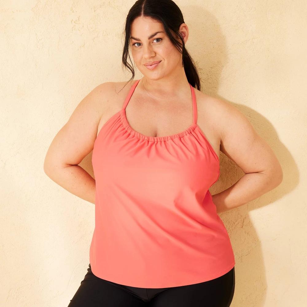 Amp up your beach wardrobe with this Tunnel-Neck Tankini Top from Shade & Shore. Made from soft, stretchy fabric with partial lining, this tricot swim top is designed with a tunnel neckline and a statement cut-out accent at the back, elevating your summer sass with a chic look. Pullover style completes the design with ease of wear and convenient on and off. Shade & Shore: Made for the sun & fit for fun.