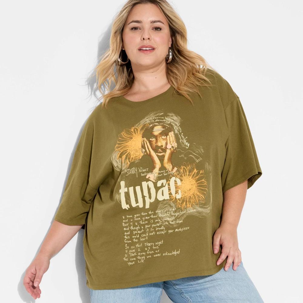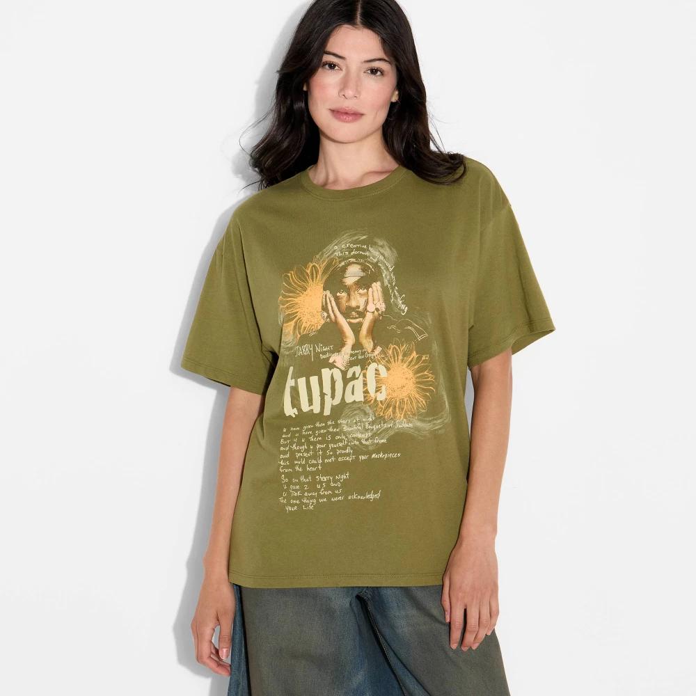 This Women’s Tupac lyrics oversized short sleeve graphic t-shirt in olive green is a relaxed and easy piece for everyday wear. It features a bold graphic with a fun striped Ford design, blending classic style with a laid-back vibe. Designed with a crew neckline and pullover style, it’s simple to throw on and go. The fabric is made for year-round comfort, light enough for warm days and easy to layer when it’s cooler.