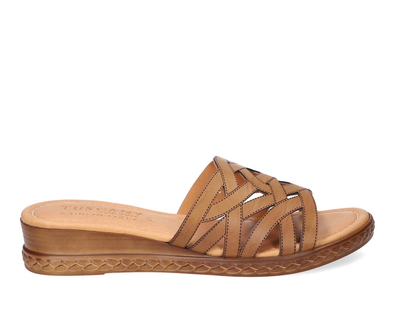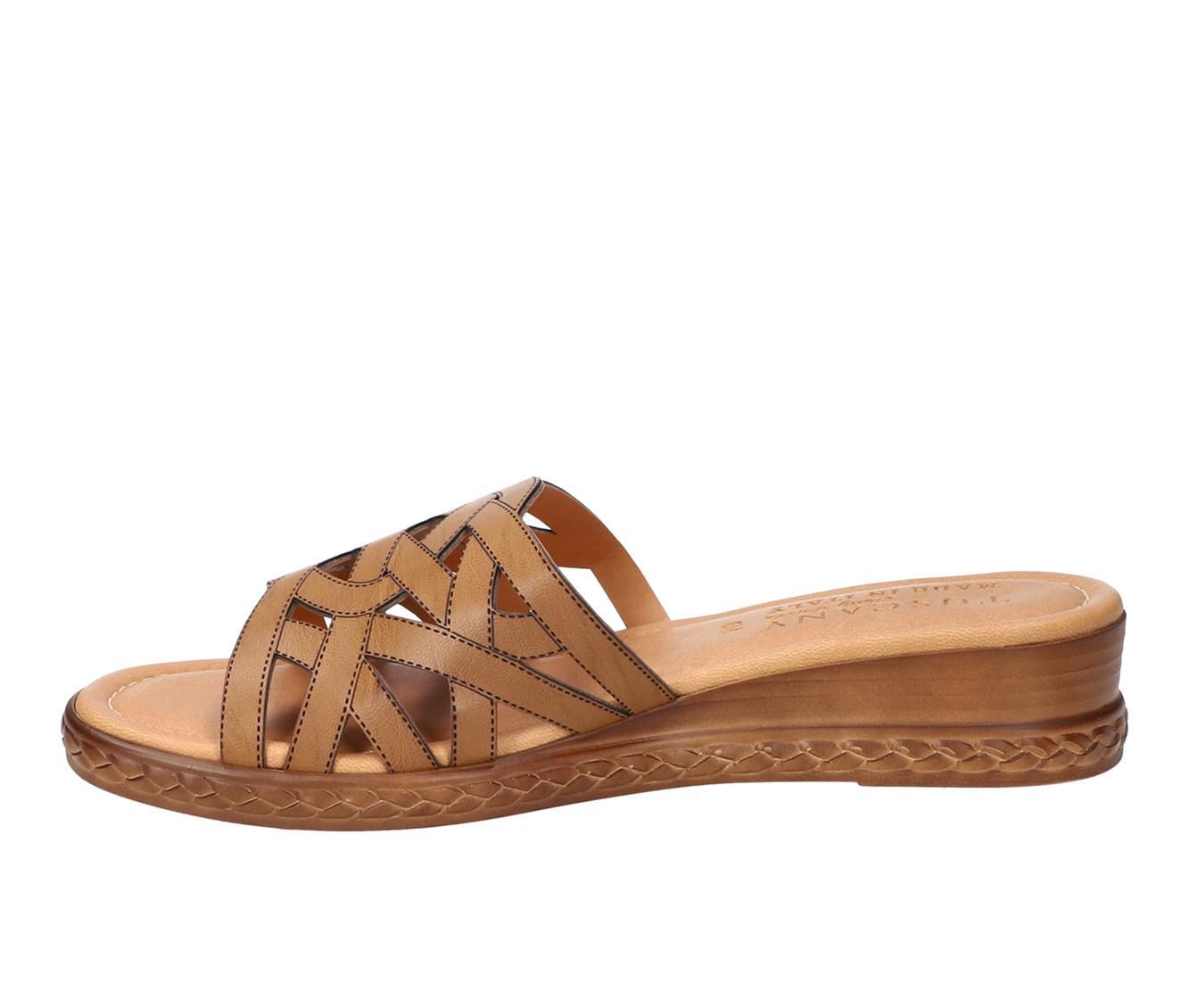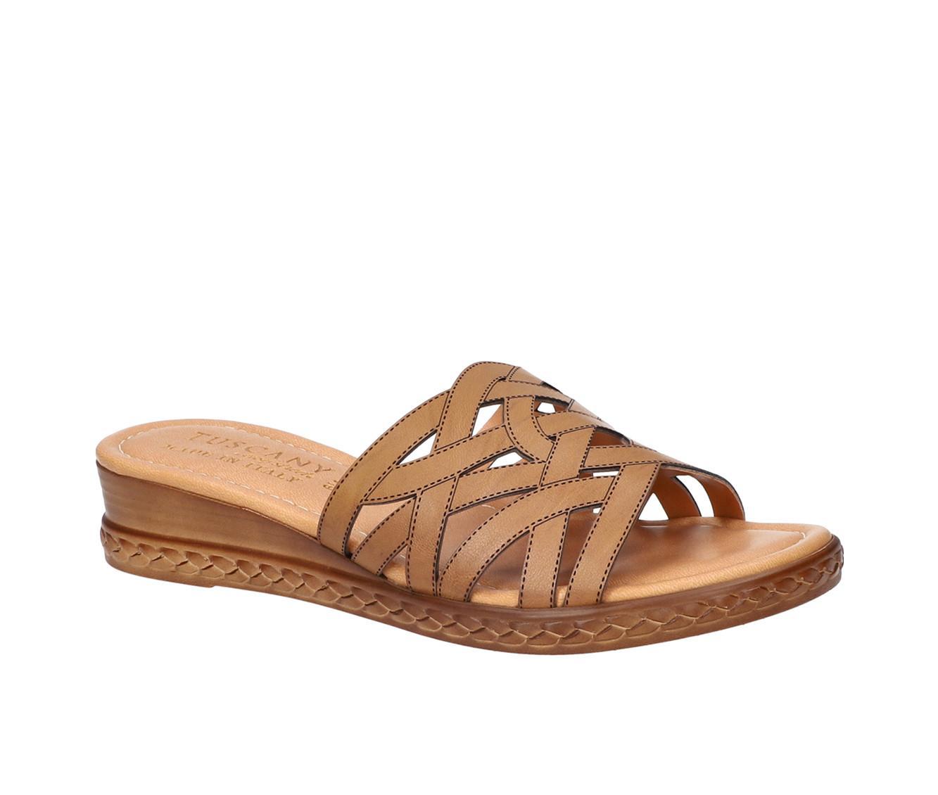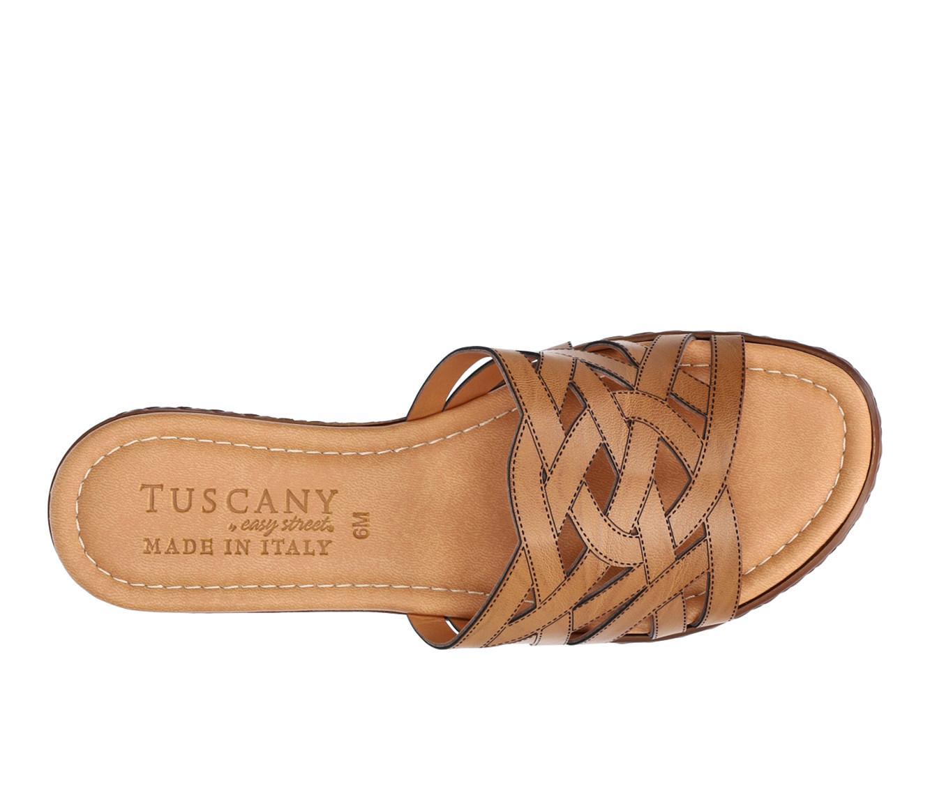 The Edda from Tuscany by Easy Street is a contemporary woven chopout detail slide sandal that combines elegance and comfort. The made in Italy Edda showcases Italian craftsmanship at its best. Its unique upper design adds a refined look to your summer outfits. The sandal is constructed on a fashionable sliver wedge and features a heel-to-toe padded insole for maximum comfort.