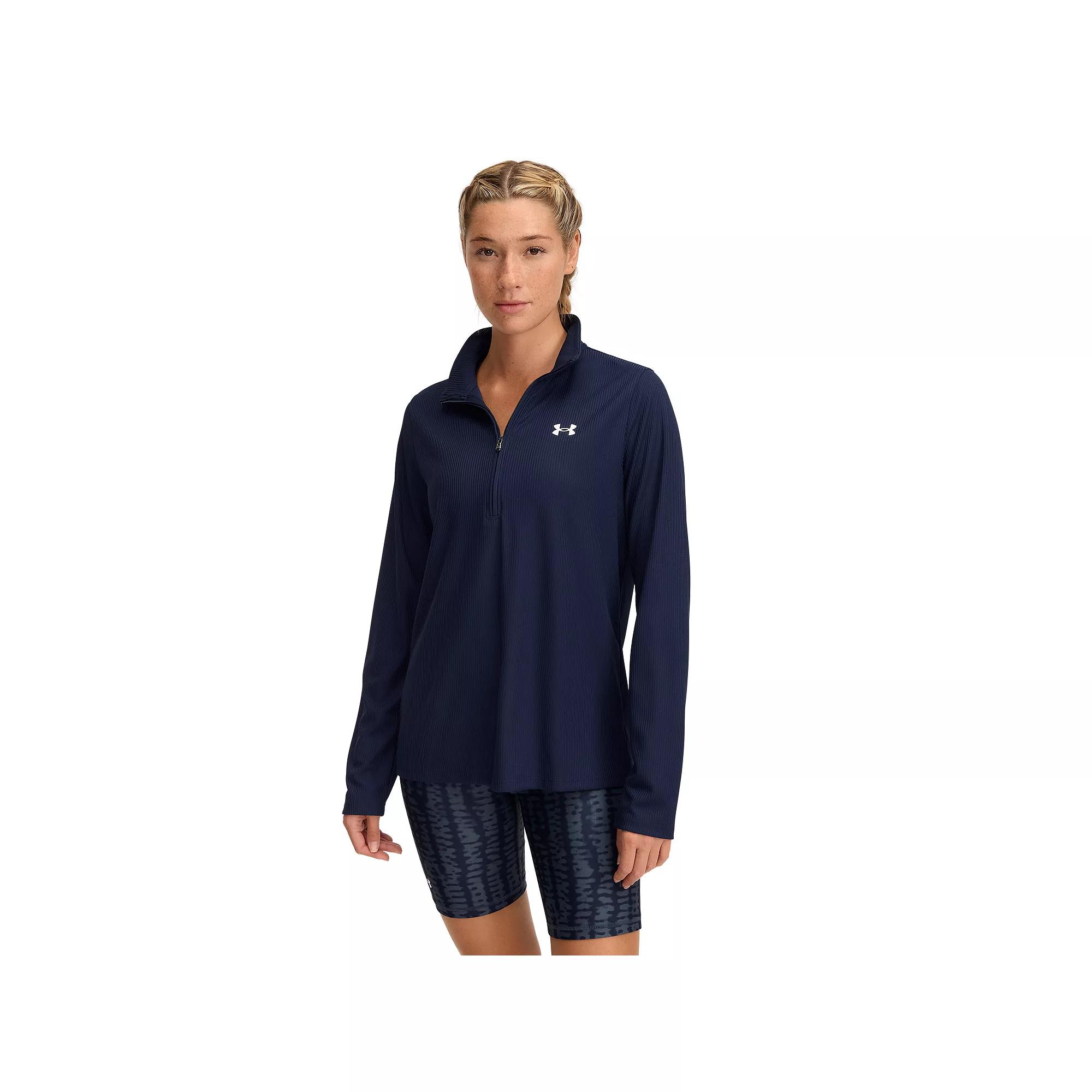 Loose, light and keeps you cool. The women's Under Armour Tech™ Rib Half-Zip Pullover is perfect for layering with a super soft ribbed texture and generous front zip, it's everything you need to conquer your workout and beyond.Click on this WOMEN'S GUIDE to find the perfect fit and more!Loose, light and keeps you cool. The women's Under Armour Tech™ Rib Half-Zip Pullover is perfect for layering with a super soft ribbed texture and generous front zip, it's everything you need to conquer your workout and beyond.Click on this WOMEN'S GUIDE to find the perfect fit and more!TECHNOLOGIES & FEATURES Mockneck Generous half-zip front closure makes for easy layering Long sleeves Moisture-wicking technology Odor control technology minimizes odor Breathable UA Tech™ fabric with ribbed texture is quick-drying, ultra-soft & moves with youFIT & SIZING Loose fitFABRIC & CARE Polyester Machine wash Imported Size: X Large. Color: Midnight Navy. Gender: female. Age Group: adult.