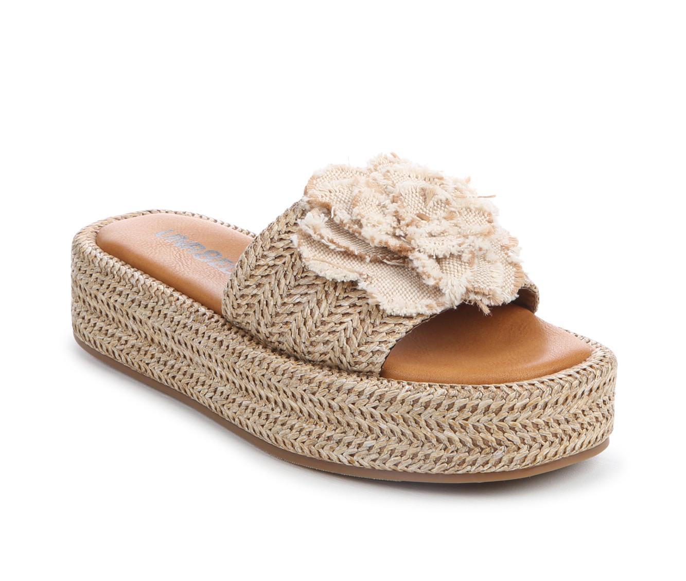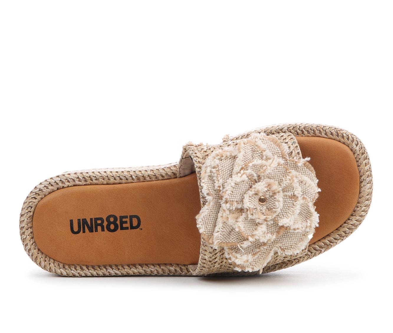 The Women's Unr8ed Refresh Platform Sandals bring beachy, laid-back energy to any outfit. Featuring a woven, espadrille-style platform and a wide slide strap adorned with a textured, frayed floral detail, these sandals are made for sunny days and effortless looks.
