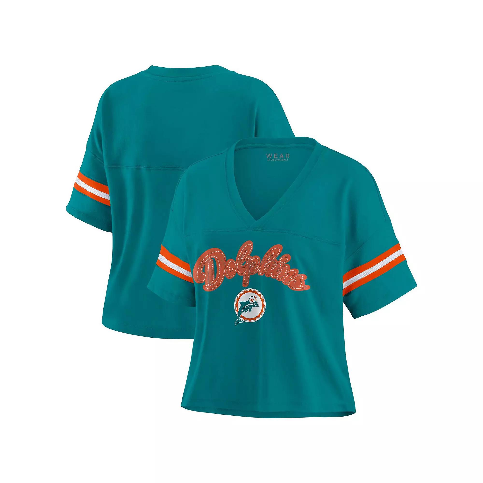 Embrace vibrant Miami Dolphins style and a comfortable fit with the WEAR by Erin Andrews Plus Size Color Block Boxy V-Neck T-Shirt. This stylish top boasts a relaxed boxy fit, crafted from luxuriously soft jersey fabric for all-day comfort. The eye-catching color block design features the Dolphins' script team name and primary logo, making it clear who you're rooting for on game day.Embrace vibrant Miami Dolphins style and a comfortable fit with the WEAR by Erin Andrews Plus Size Color Block Boxy V-Neck T-Shirt. This stylish top boasts a relaxed boxy fit, crafted from luxuriously soft jersey fabric for all-day comfort. The eye-catching color block design features the Dolphins' script team name and primary logo, making it clear who you're rooting for on game day.PRODUCT FEATURESOfficially licensedShort sleeveMaterial: 100% CottonBrand: WEAR by Erin AndrewsSleeve stripesMachine wash with garment inside out, tumble dry lowScript team name and primary are printed on frontV-neckImportedFront and back yoke seamsLuxuriously soft jersey fabricBoxy fit for a relaxed feel and freedom of movement Size: 3X. Color: Turq A. Gender: female. Age Group: adult.