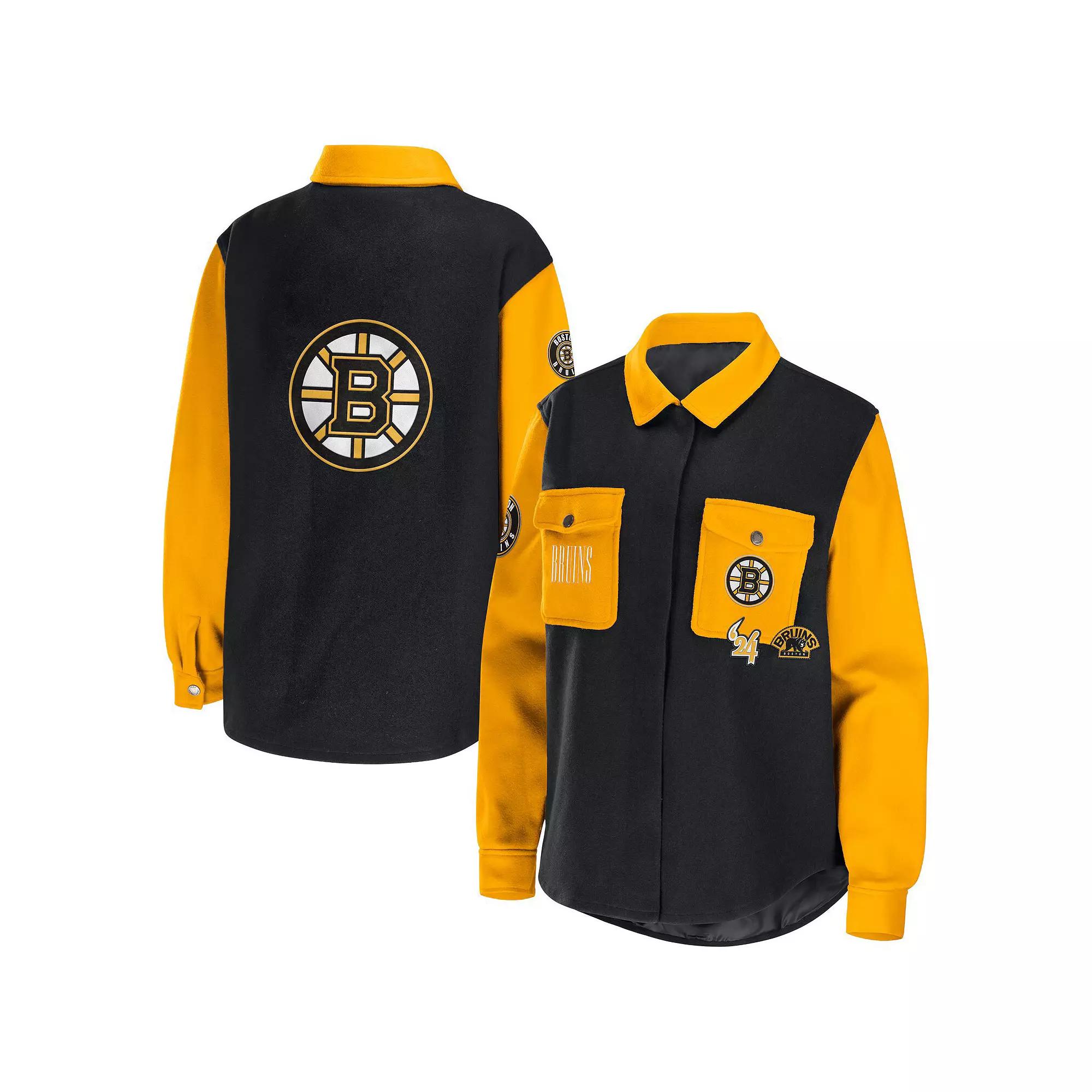 Add a unique finish to any Boston Bruins look with this button-up shirt jacket from WEAR by Erin Andrews. It features an eye-catching colorblock design with Boston Bruins patches and graphics for a spirited game day outfit. Plus, the cozy midweight design supplies extra warmth for comfort.