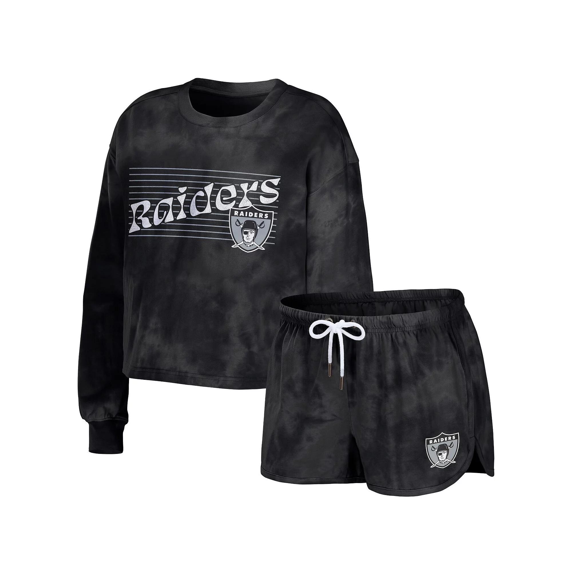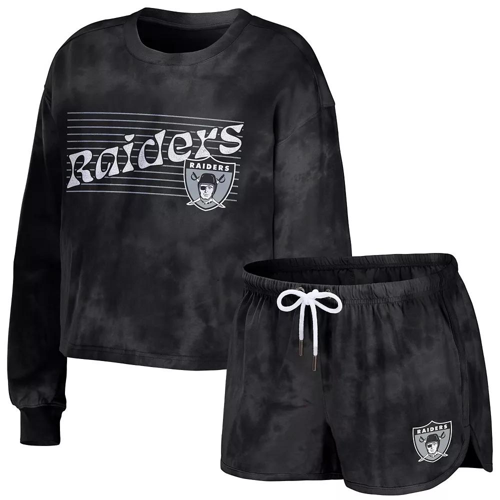 Women's WEAR by Erin Andrews Black Las Vegas Raiders Tie-Dye Cropped Pullover Sweatshirt & Shorts Lounge Set,