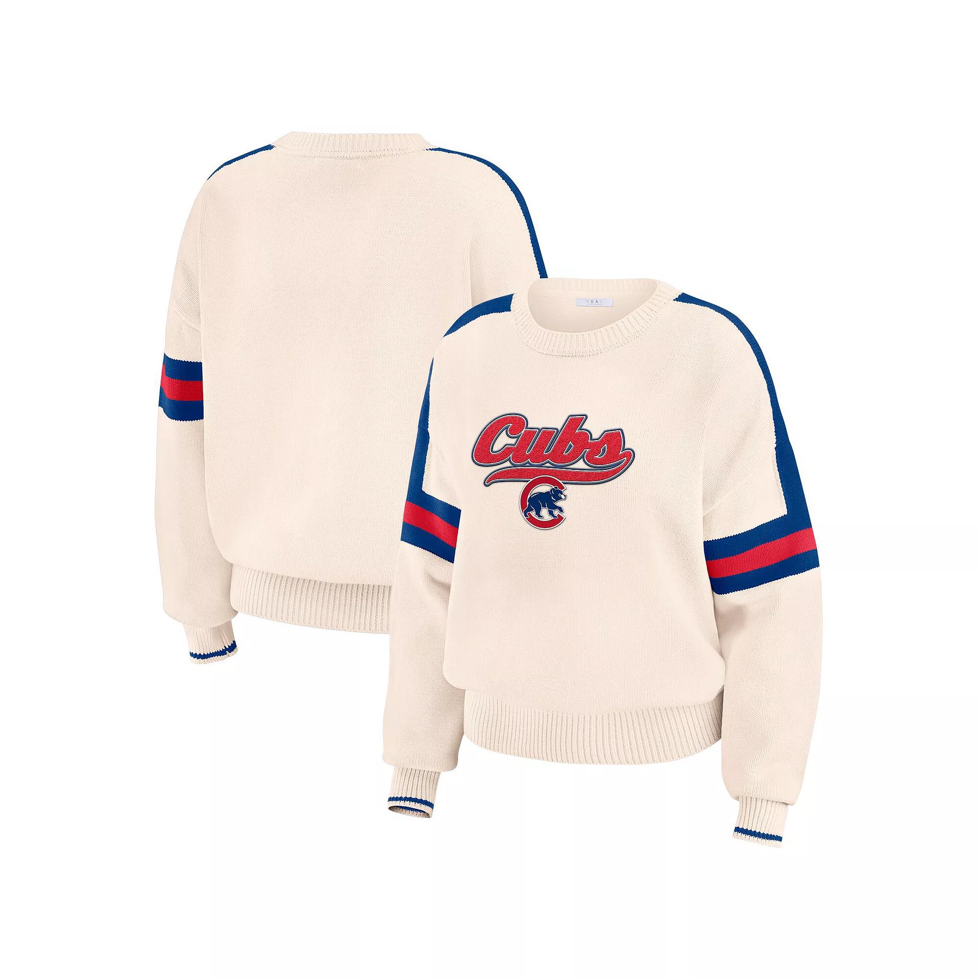 Cozy up for game day with this Chicago Cubs Stripe Pullover Sweater from WEAR by Erin Andrews. This sweater features embroidered chenille applique graphics across the chest for a touch of team spirit. Its midweight design and cozy cotton-polyester blend make it perfect for those chilly days at the ballpark or casual outings during the cooler months.Cozy up for game day with this Chicago Cubs Stripe Pullover Sweater from WEAR by Erin Andrews. This sweater features embroidered chenille applique graphics across the chest for a touch of team spirit. Its midweight design and cozy cotton-polyester blend make it perfect for those chilly days at the ballpark or casual outings during the cooler months.PRODUCT FEATURESDropped shoulders provide a relaxed fitCrew neckMidweight sweater suitable for moderate temperaturesOfficially licensedRib-knit cuffs, collar and hem for a secure fitImportedMaterial: 60% Cotton/40% AcrylicLong sleeveBrand: WEAR by Erin AndrewsEmbroidered chenille applique graphics across chestPulloverMachine wash with garment inside out, tumble dry low Size: XL. Color: Beige. Gender: female. Age Group: adult.
