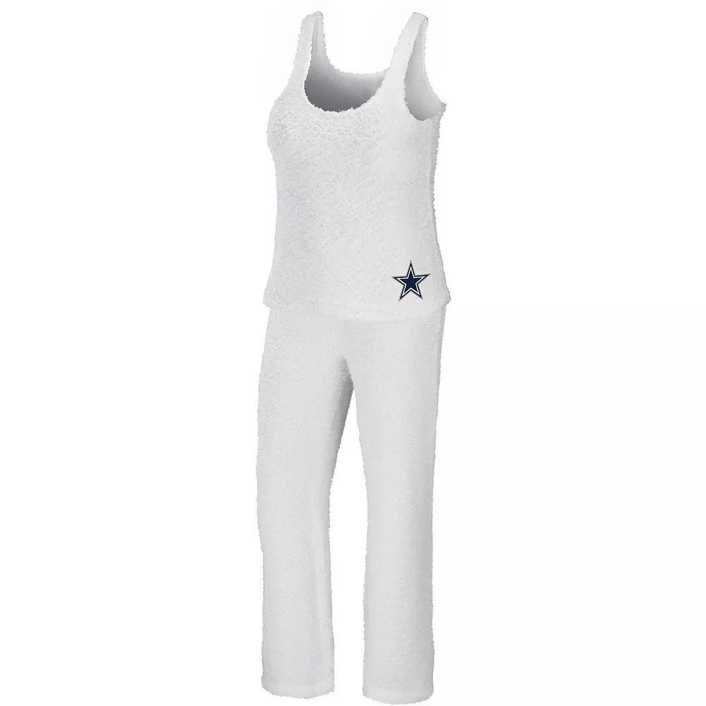 Rest comfortably while showcasing your Dallas Cowboys spirit in this WEAR by Erin Andrews tank top and pants set. It features subtle yet striking Dallas Cowboys graphics so that your fandom is undeniable. Plus, the cozy fabric offers comfort with each wear. Sleeveless. Imported. Tagless Collar. Brand: WEAR by Erin Andrews. Machine wash, tumble dry low. Elastic waistband. Inseam on size 1X measures approx. 31''. Scoop neck. Woven fabric applique at waistband. Material: 100% Polyester. Embroidered fabric applique. Set includes tank top and pants. Officially licensed. Size: 3X. Color: Beige. Gender: female. Age Group: adult. Material: COTTON.