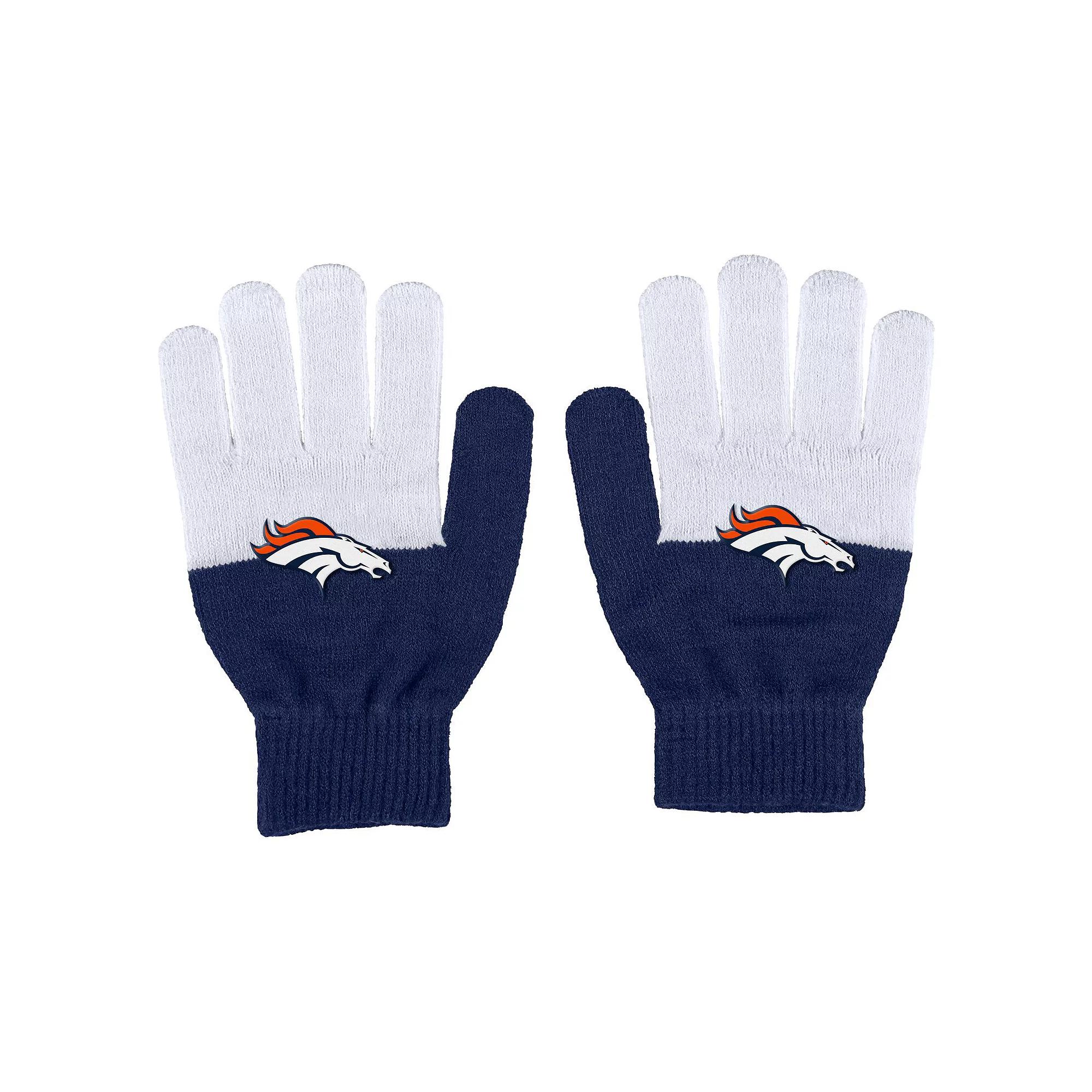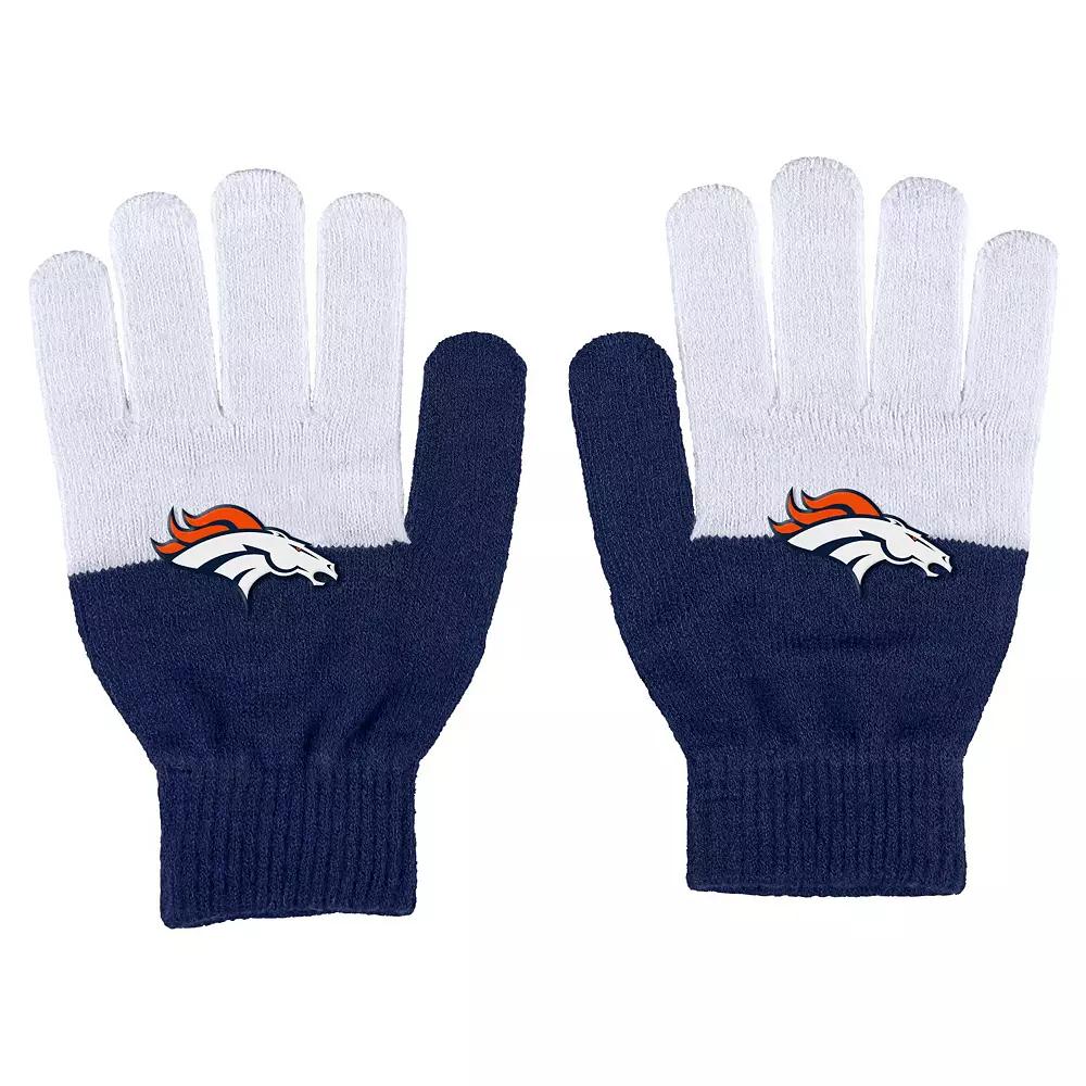 Keep your hands warm in the cozy feel of these Denver Broncos gloves from WEAR by Erin Andrews. The color-block design features the Denver Broncos logo printed on a blend of soft, stretch fabrics. Rib-knit cuffs help trap in heat for continuous comfort.Keep your hands warm in the cozy feel of these Denver Broncos gloves from WEAR by Erin Andrews. The color-block design features the Denver Broncos logo printed on a blend of soft, stretch fabrics. Rib-knit cuffs help trap in heat for continuous comfort.PRODUCT FEATURESOfficially licensedBrand: WEAR by Erin AndrewsHeat-sealed graphicsHand wash, dry flatImportedMaterial: 81% Acrylic/18% Polyester/1% ElastaneOne size fits mostRib-knit cuffs Size: One Size. Color: Multicolor. Gender: female. Age Group: adult.