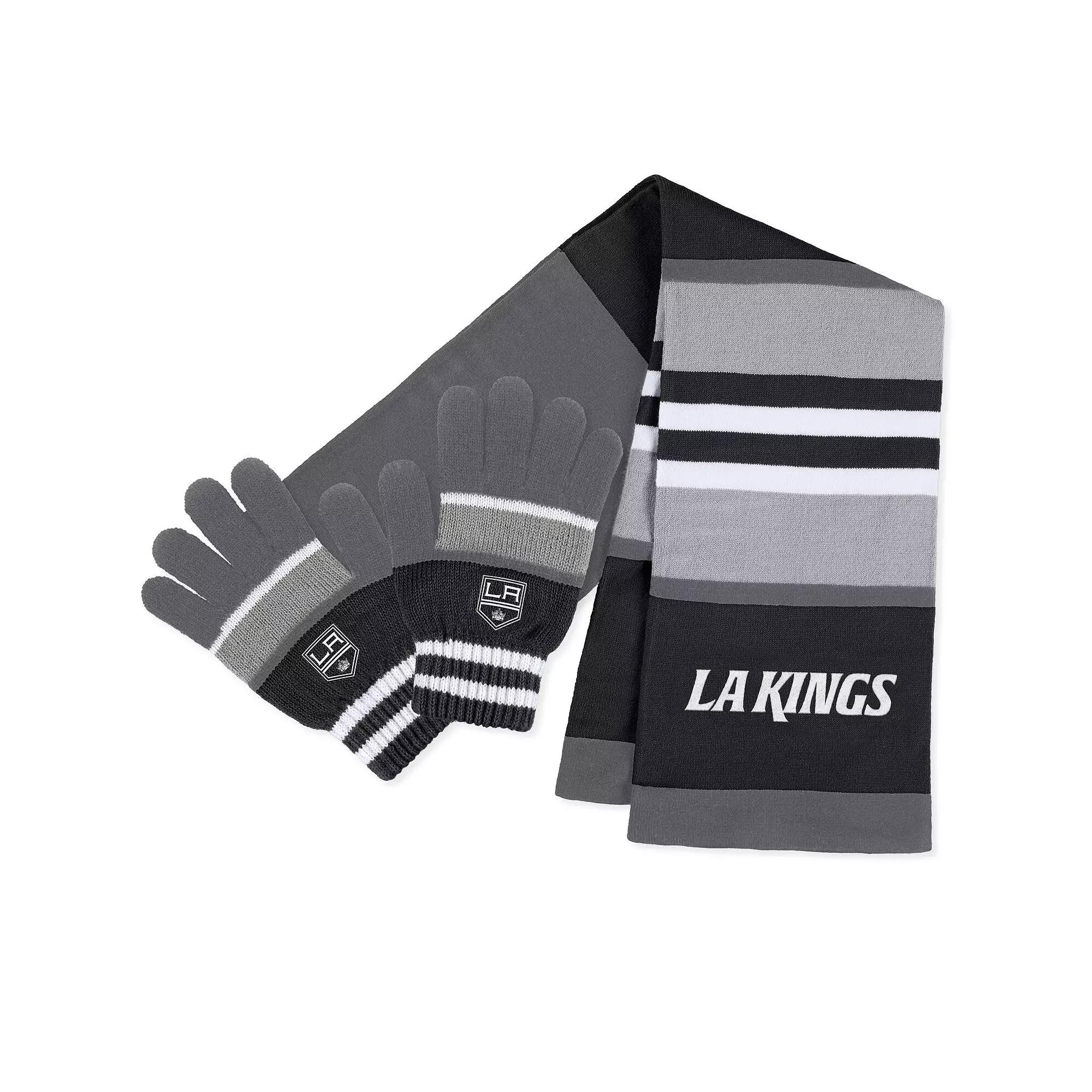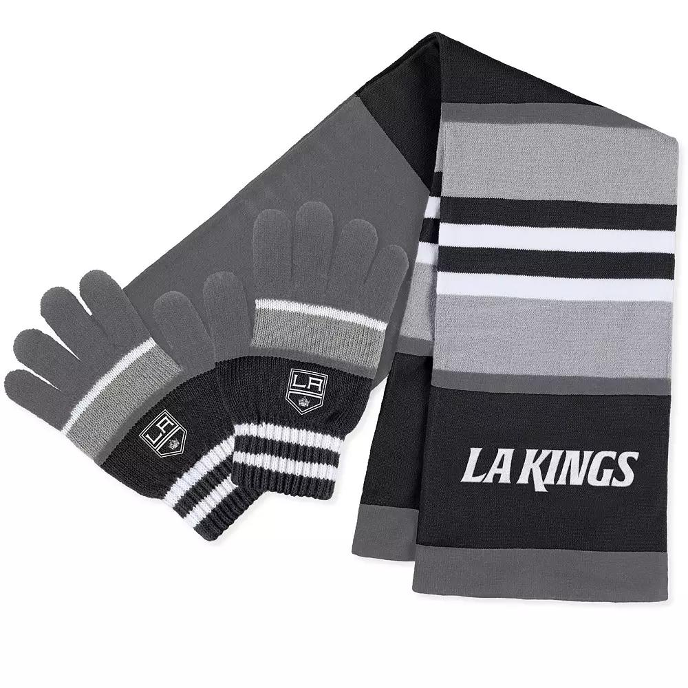 As temperatures descend, heat things up with this Los Angeles Kings scarf and gloves set from WEAR by Erin Andrews. It features embroidered graphics that enhance your fandom in comfort. The knit design makes this cozy combo a stylish ensemble you wont hesitate to reach for on colder Los Angeles Kings game days.