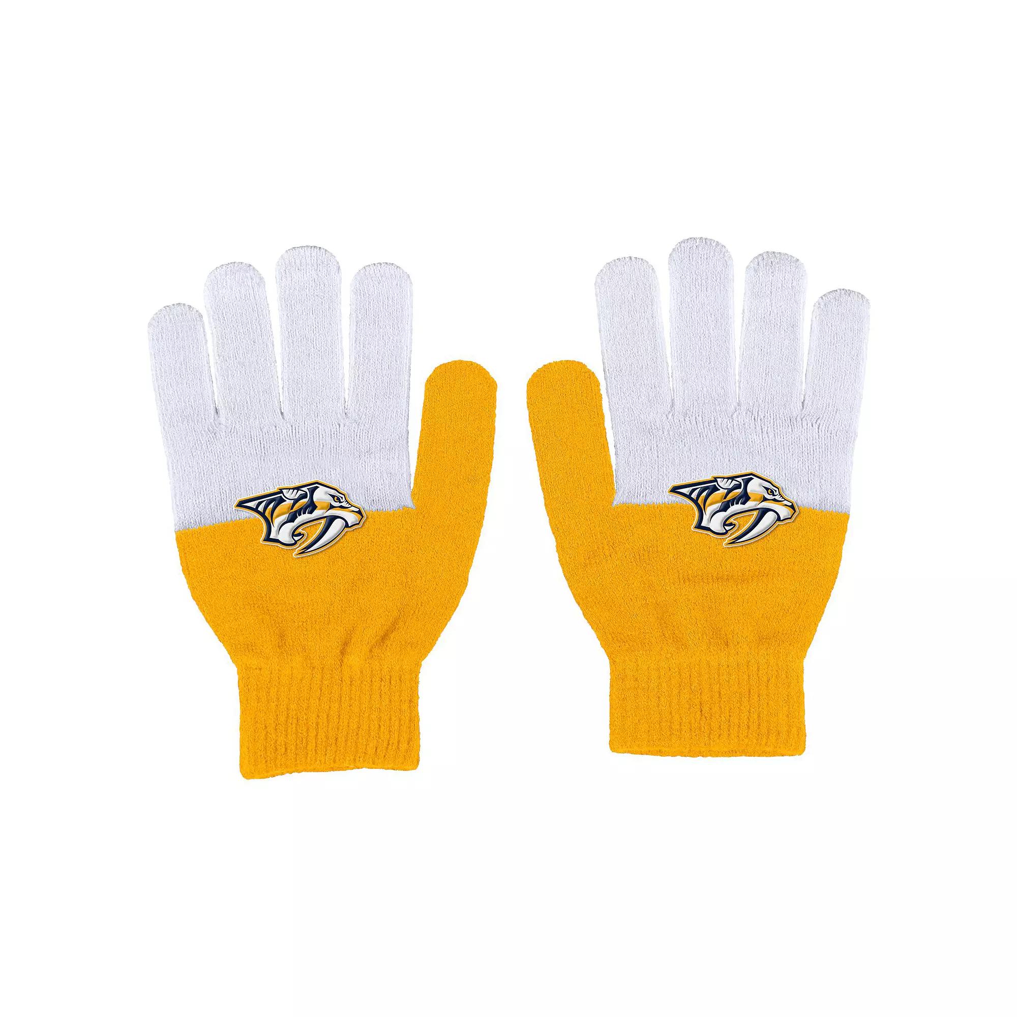 Keep your hands warm in the cozy feel of these Nashville Predators Speckled gloves from WEAR by Erin Andrews. The color-block design features the Nashville Predators logo printed on a blend of soft, stretch fabrics. Rib-knit cuffs help trap in heat for continuous comfort.