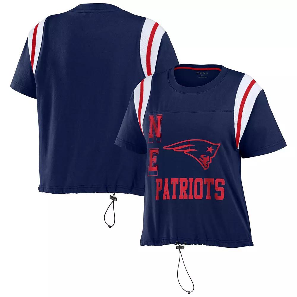 Women's WEAR by Erin Andrews Navy New England Patriots Cinched Colorblock T-Shirt,  Product Image
