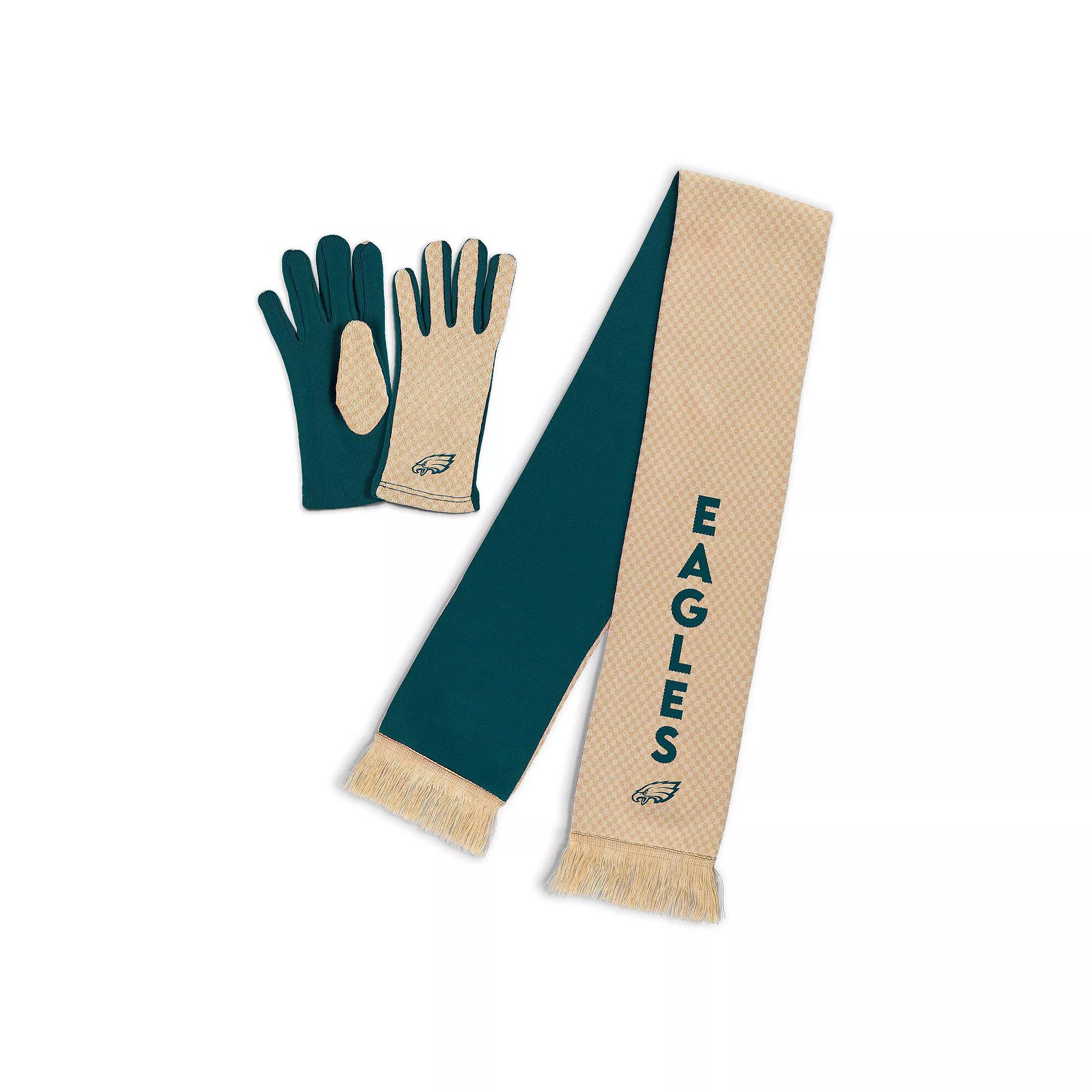 Heat things up when the temperature drops with this Philadelphia Eagles Tonal Microcheck Scarf & Glove Set from WEAR by Erin Andrews. This set includes a cozy scarf and a pair of gloves, adorned with embroidered and knit Philadelphia Eagles graphics. The tonal microcheck design elevates your fan style while you showcase your unwavering support for your favorite team, whether you're at the stadium or on the go. Brand: WEAR by Erin Andrews. Scarf measures approx. 70 long (includes fringe). Material: 100% Acrylic. Imported. Single-sided embroidered team logo on gloves and scarf. Knit design and wordmark on scarf. Set includes gloves and scarf. Officially licensed. One size fits most. Hand wash, dry flat. Gender: female. Age Group: adult. Material: COTTON.