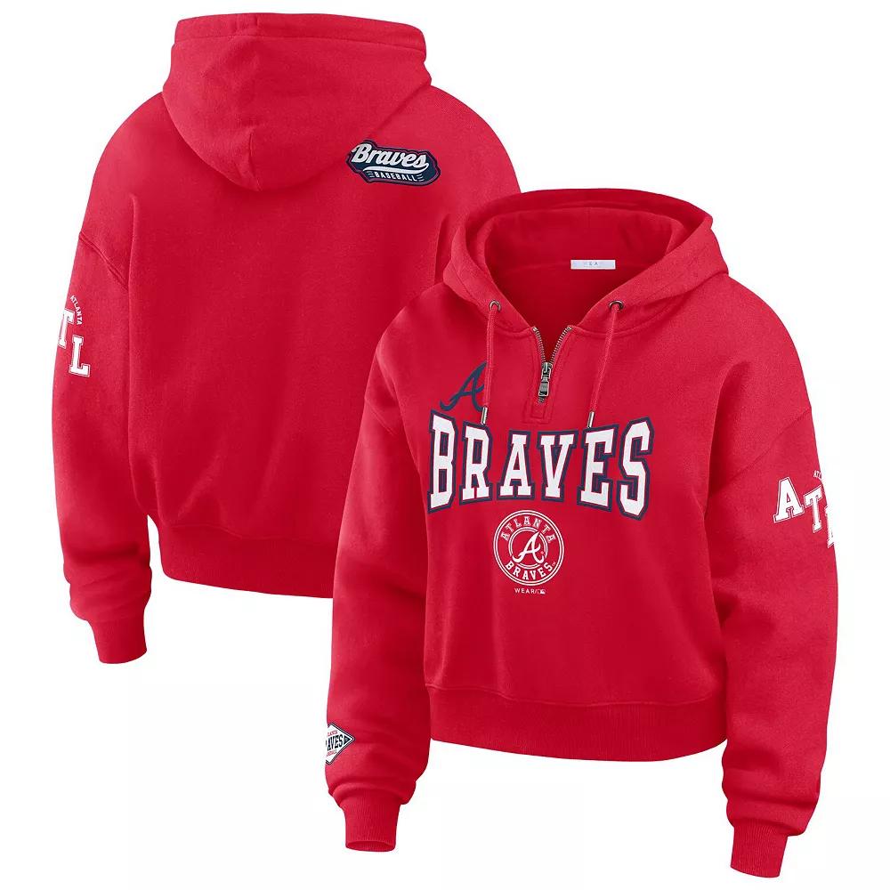 Cozy up on game day in this Atlanta Braves Patch Quarter-Zip Hoodie from WEAR by Erin Andrews. This quarter-zip hoodie boasts a combination of printed team logos and graphics, alongside woven team logo patches, for a multi-dimensional display of Atlanta Braves spirit. Made with a blend of cotton and polyester, this midweight hoodie provides a comfortable and stylish layer for moderate temperatures.Cozy up on game day in this Atlanta Braves Patch Quarter-Zip Hoodie from WEAR by Erin Andrews. This quarter-zip hoodie boasts a combination of printed team logos and graphics, alongside woven team logo patches, for a multi-dimensional display of Atlanta Braves spirit. Made with a blend of cotton and polyester, this midweight hoodie provides a comfortable and stylish layer for moderate temperatures.PRODUCT FEATURESLong sleeveOfficially licensedPulloverHoodedBrand: WEAR by Erin AndrewsMachine wash, tumble dry lowImportedMidweight hoodie suitable for moderate temperaturesPrinted team logos and graphicsMaterial: 80% Cotton/20% PolyesterWoven team logo patches Size: 2X. Color: Red. Gender: female. Age Group: adult.