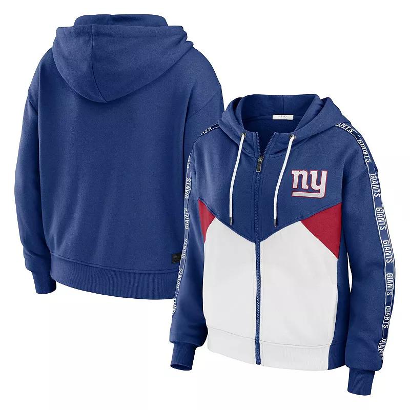 Style and comfort on cooler New York Giants game days is effortless with this Color Block full-zip hoodie from WEAR by Erin Andrews. It features New York Giants details accentuated by the geometric design and contrasting drawstring. Fleece lining provides an extra layer of warmth and softness.
