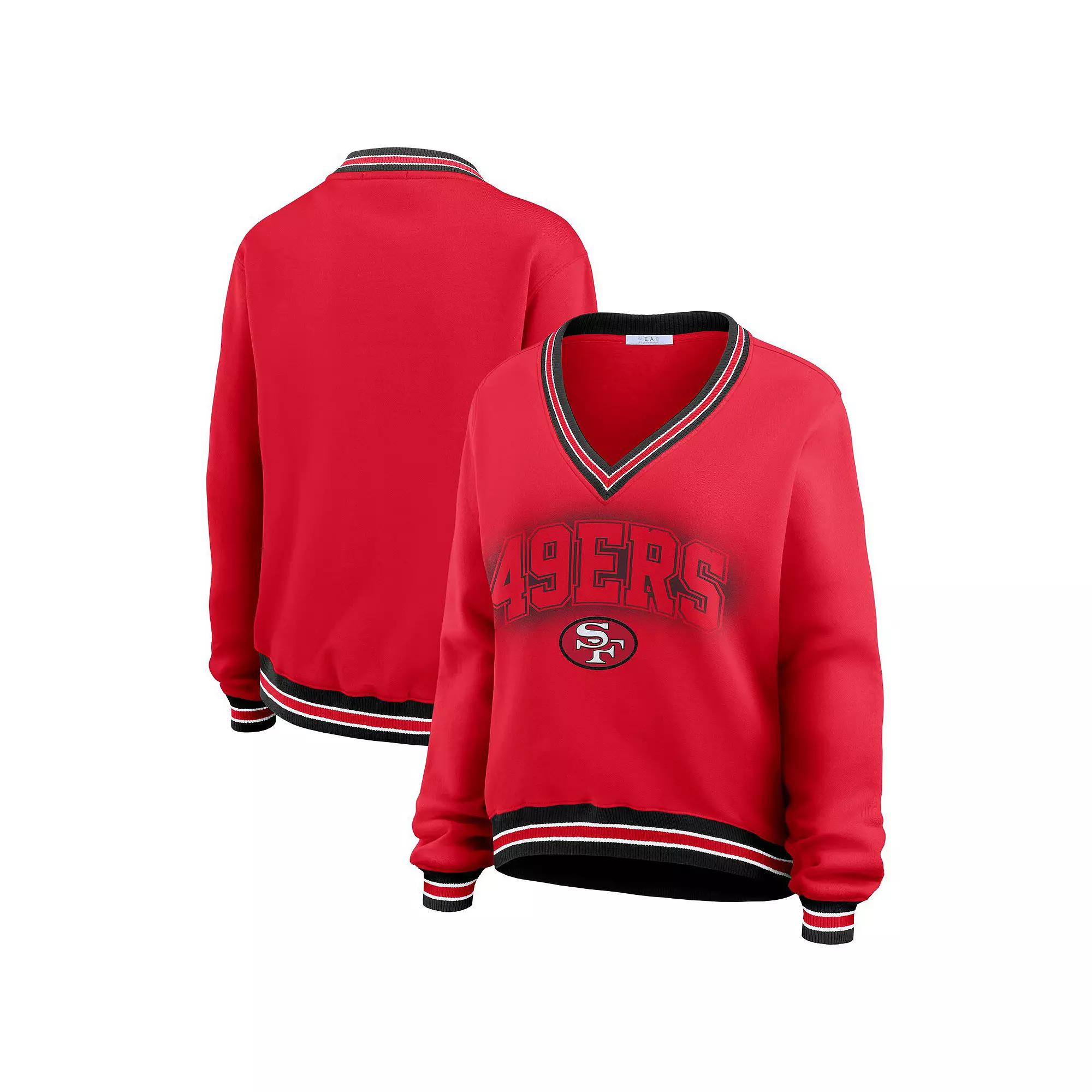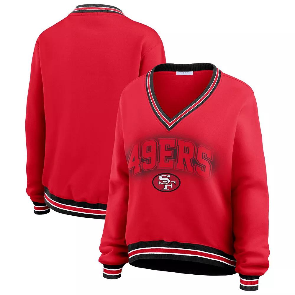 Cozy up and show your San Francisco 49ers pride with this WEAR by Erin Andrews Oversized Long Sleeve V-Neck Sweatshirt. This super-soft sweatshirt features a sublimated rib-knit collar, cuffs and waistband for a touch of textural detail. Plus, the screen print graphic stacked with tackle twill applique on the front makes it clear youre a devoted member of the Faithful.Cozy up and show your San Francisco 49ers pride with this WEAR by Erin Andrews Oversized Long Sleeve V-Neck Sweatshirt. This super-soft sweatshirt features a sublimated rib-knit collar, cuffs and waistband for a touch of textural detail. Plus, the screen print graphic stacked with tackle twill applique on the front makes it clear youre a devoted member of the Faithful.PRODUCT FEATURESImportedBrand: WEAR by Erin AndrewsV-neckDropped shoulder seams provide a relaxed fitMidweight sweatshirt suitable for moderate temperaturesPulloverScreen print graphic stacked with tackle twill applique on the frontOfficially licensedMachine wash, tumble dry lowFleece lining provides added warmth and a soft feelSublimated rib-knit collar, cuffs and waistbandLong sleeveMaterial: 60% Cotton/40% Polyester Size: XL. Color: Red. Gender: female. Age Group: adult.