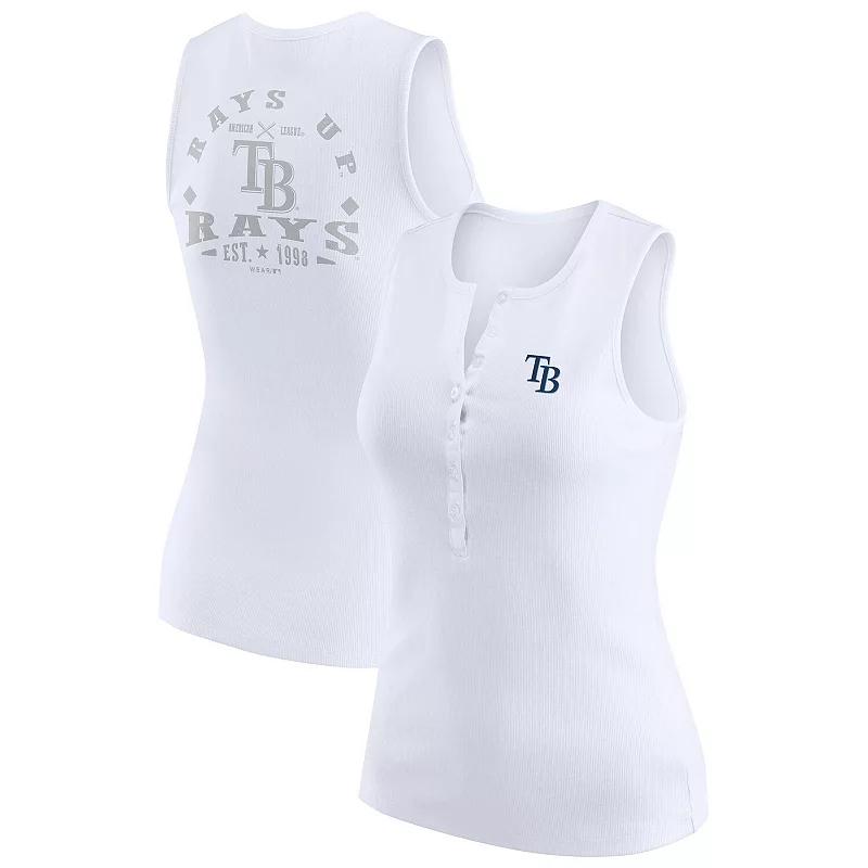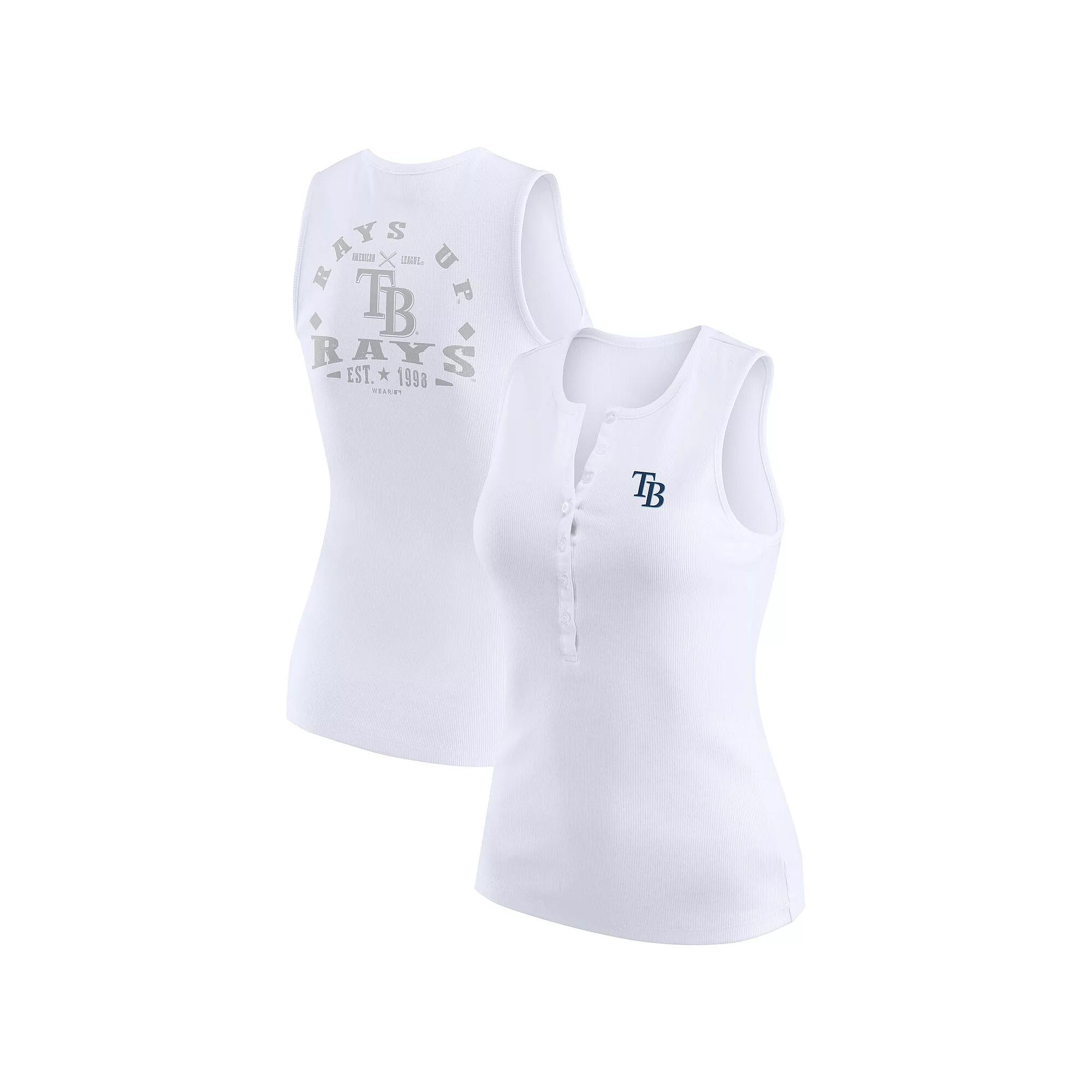 Show off your New York Liberty pride with this Rib-Knit Henley Tank Top from WEAR by Erin Andrews. With its rib-knit fabric, this tank provides a comfortable and flattering fit, perfect for layering or wearing on its own. The screen-printed team graphics on the left chest and back proudly display your New York Liberty fandom, making this tank top a stylish choice for game day or any casual occasion. Officially licensed. Imported. Material: 96% Cotton/4% Elastane. Henley placket with seven buttons for a casual look. Screen print team graphics on left chest and back. Crew neck. Brand: WEAR by Erin Andrews. Machine wash with garment inside out, tumble dry low. Sleeveless. Color: Wnb White. Gender: female. Age Group: adult.