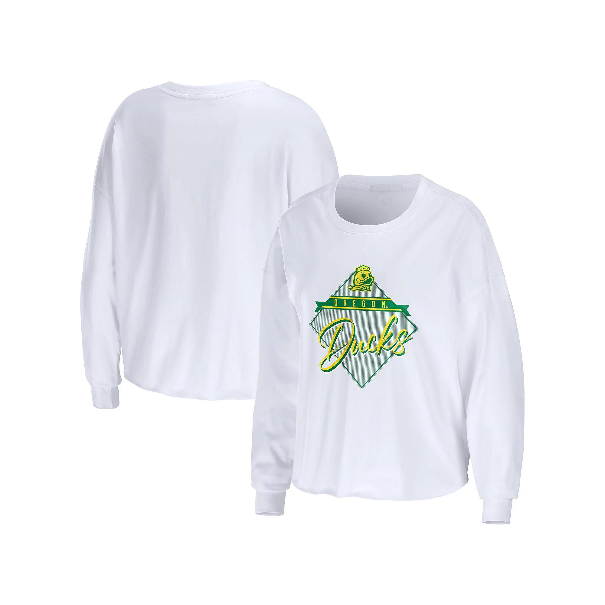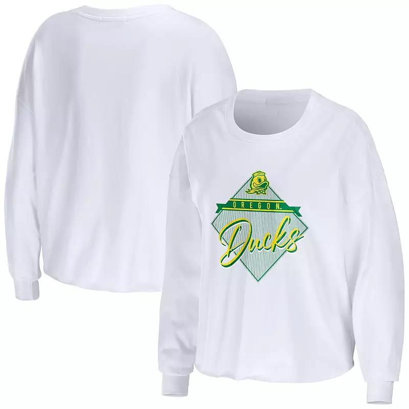 Women's WEAR by Erin Andrews White Oregon Ducks Diamond Long Sleeve Cropped T-Shirt,