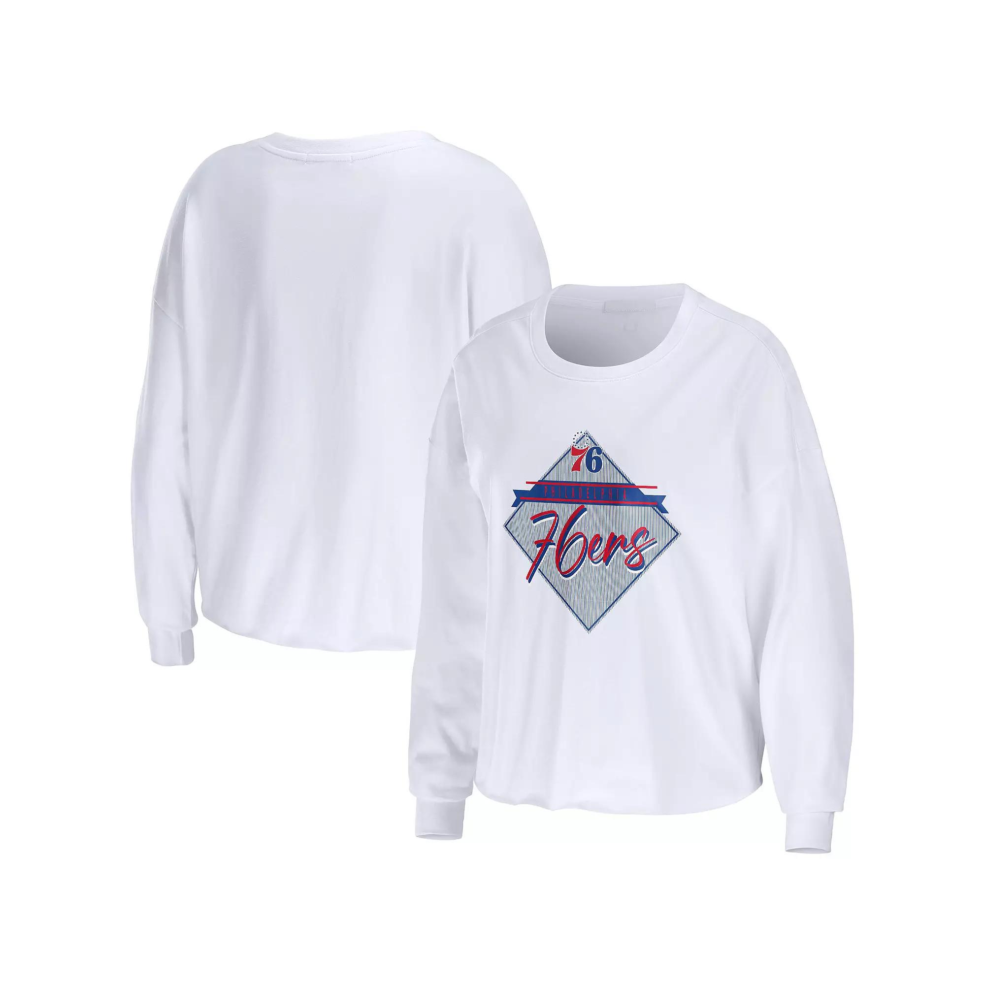 Keep your style on point in cooler weather with this Philadelphia 76ers Cropped T-shirt from WEAR by Erin Andrews. The dropped shoulders and jersey fabric provide a comfortable fit and feel. Printed Philadelphia 76ers graphics stand out against the solid material, putting focus on your favorite team.