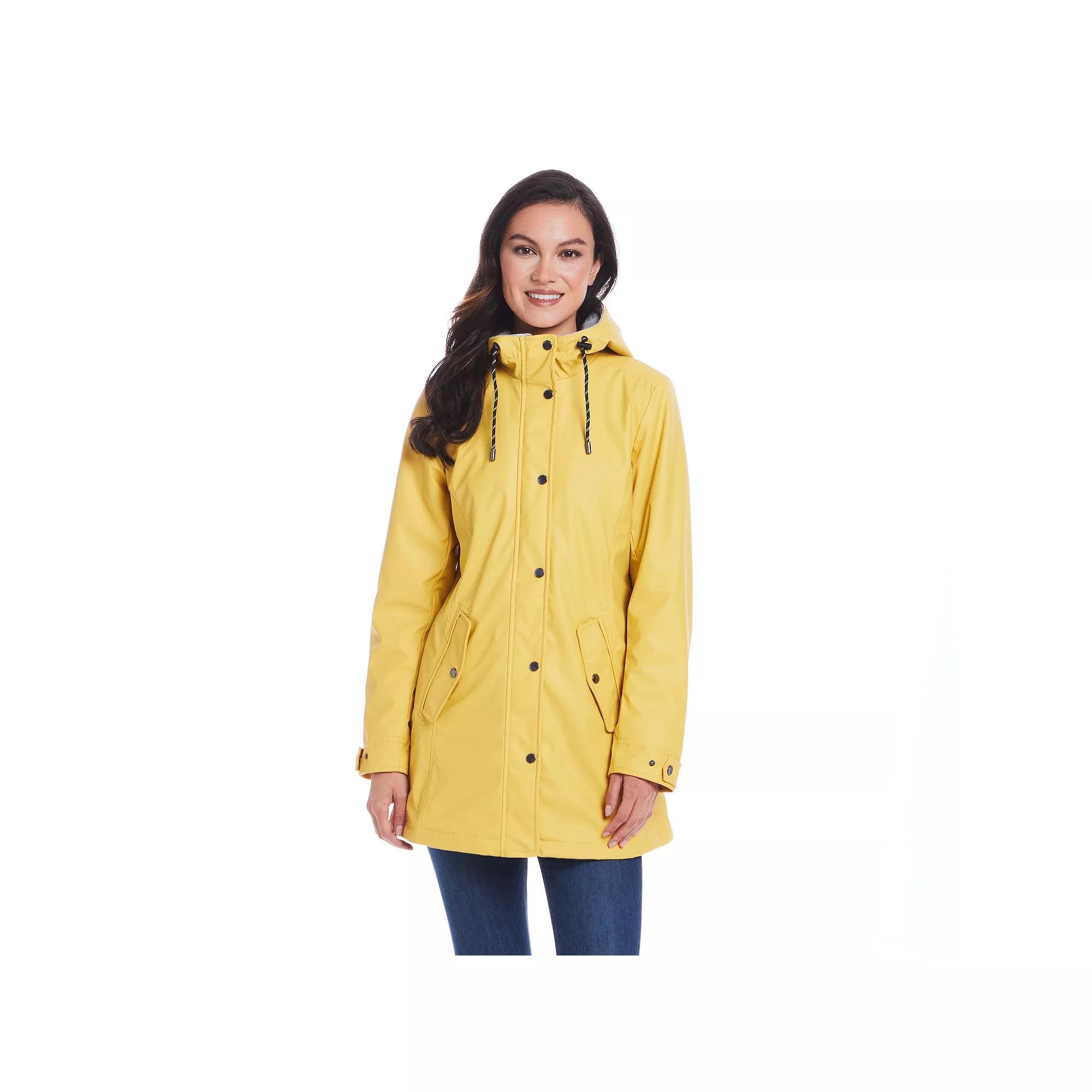 Keep the rain at bay wearing this women's Weathercast hooded rain coat. Click on this WOMEN'S GUIDE to find the perfect fit and more! - https://www.kohls.com/feature/womens-fit-guide.jsp. FEATURES: Slick woven water-resistant exterior, 2 side pockets, Attached hood, Snap & zipper front, Long sleeves with adjustable snap-tab cuffs, Fully lined, Plush cozy lining inside the hood and back yoke. FIT & SIZING: 32-in. length from shoulder to hem, Relaxed fit, Designed to hit just below the waist, Midweight. FABRIC & CARE: Body: polyurethane, Lining: polyester, Hand wash, Imported. Size: Large. Color: Daffodil. Gender: female. Age Group: adult.