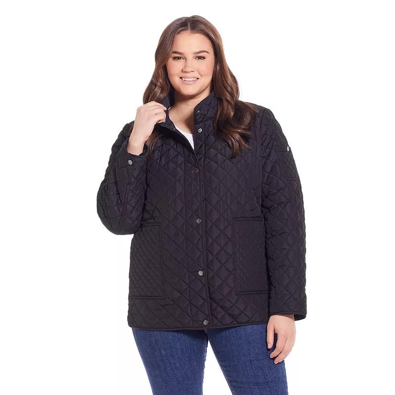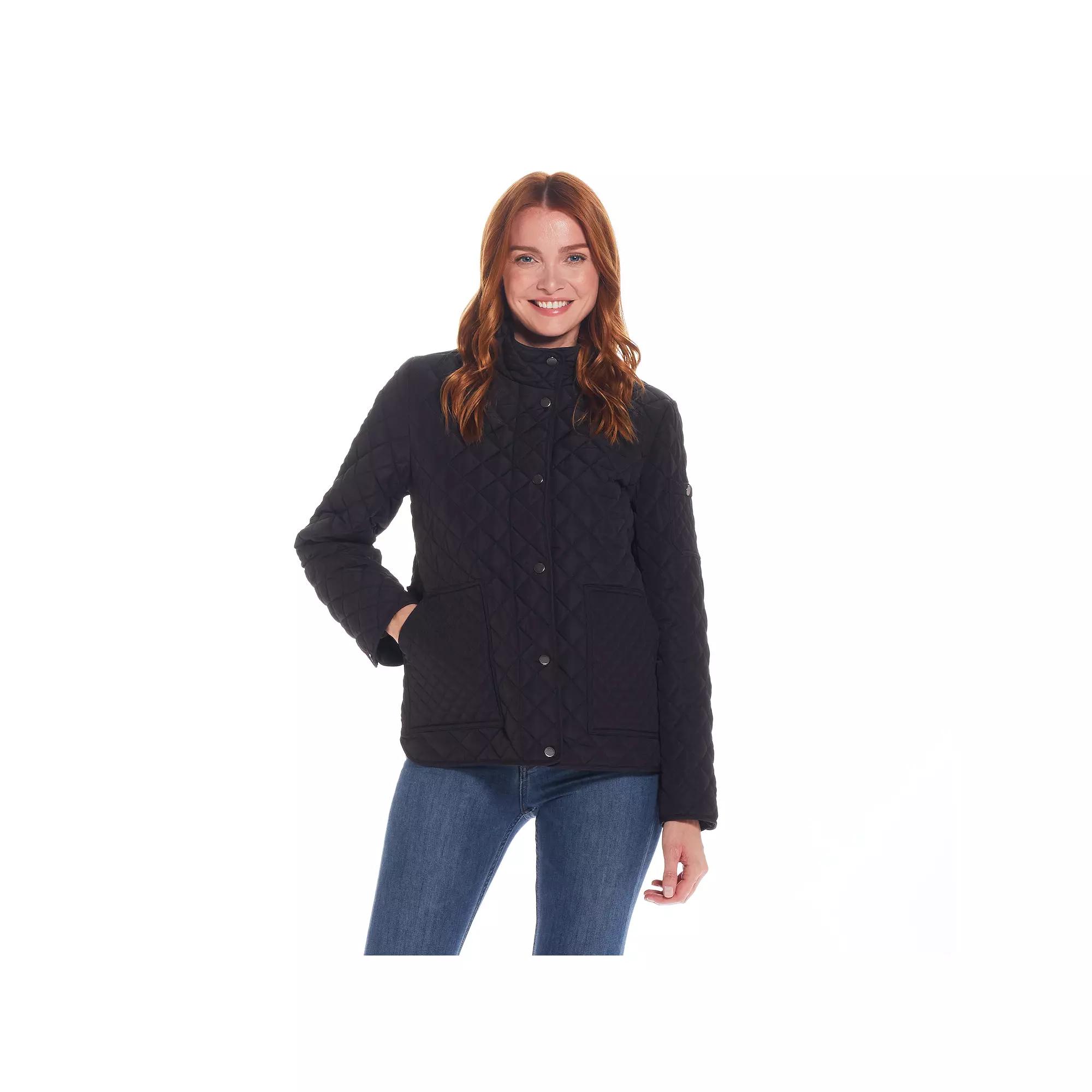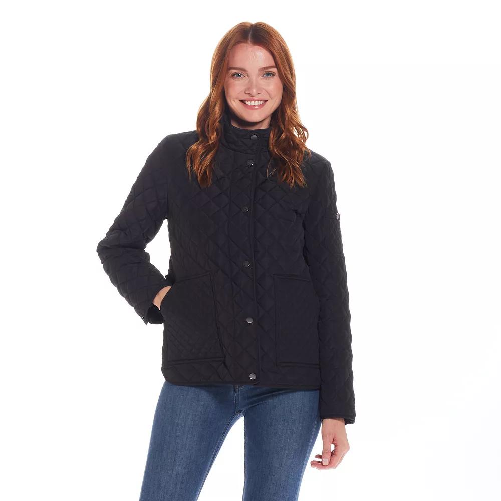 Black Diamond-Quilted Barn Jacket - Women & Plus. Banish cold weather blues with this diamond-quilted jacket crafted with patch pockets and two adjustable tab snaps. Size M: 28 long from high point of shoulder to hemWoven100% polyesterMachine wash; tumble dryImported