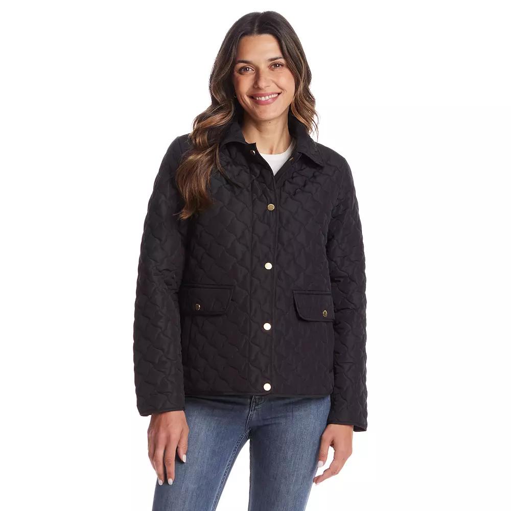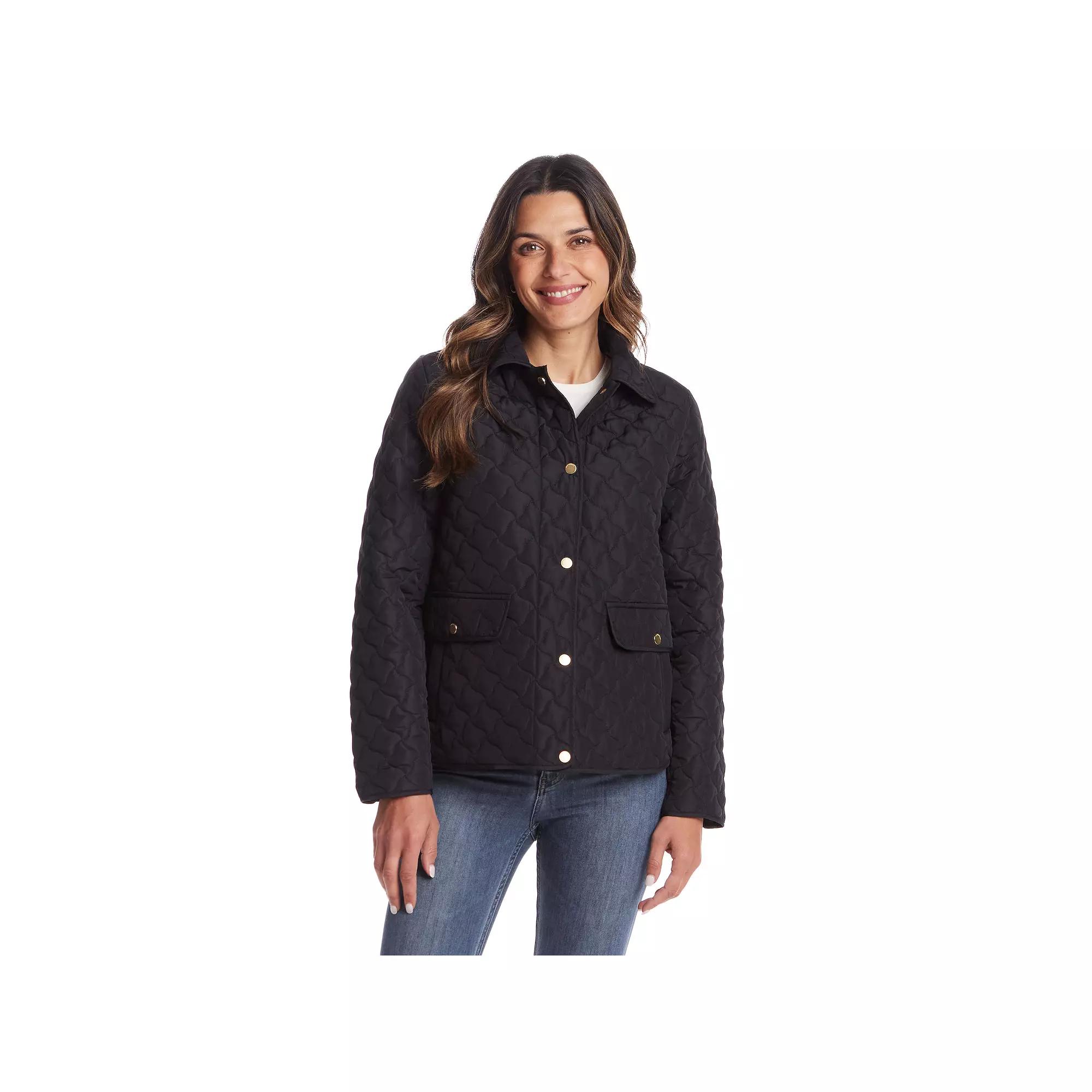 Elevate your wardrobe with this women's Weathercast modern quilted barn jacket.Click on this WOMEN'S GUIDE to find the perfect fit and more!Elevate your wardrobe with this women's Weathercast modern quilted barn jacket.Click on this WOMEN'S GUIDE to find the perfect fit and more!FEATURES Hi low hemline gives the fit an extra feminine flare Woven, soft, and smooth 2 side entry front pockets Snap closure Snap cuffs Long sleeves Fully linedFIT & SIZING 24-in. length from shoulder to hem Designed to hit just below the waist MidweightFABRIC & CARE Polyester Machine wash delicate and tumble dry low Imported Size: X Large. Color: Black. Gender: female. Age Group: adult.