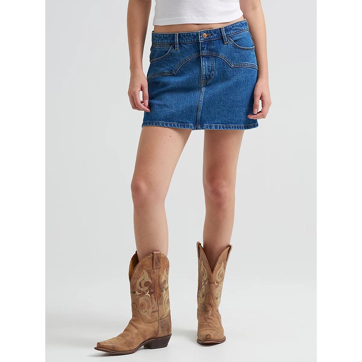 A lot of cowgirl energy in a length that’s perfect for sunny-day adventures. Meet your new staple: the Women’s Western Mini Skirt. It’s crafted from cotton with just a hint of stretch for comfort that lasts from dawn to dusk. What really sets this denim skirt apart is that seamed, single-point yoke detail across the front, lending some iconic Western style to your warm-weather rotation. Plus, you’ll have the same five-pocket styling, ‘W’ stitching, and logo patch of your favorite pairs.