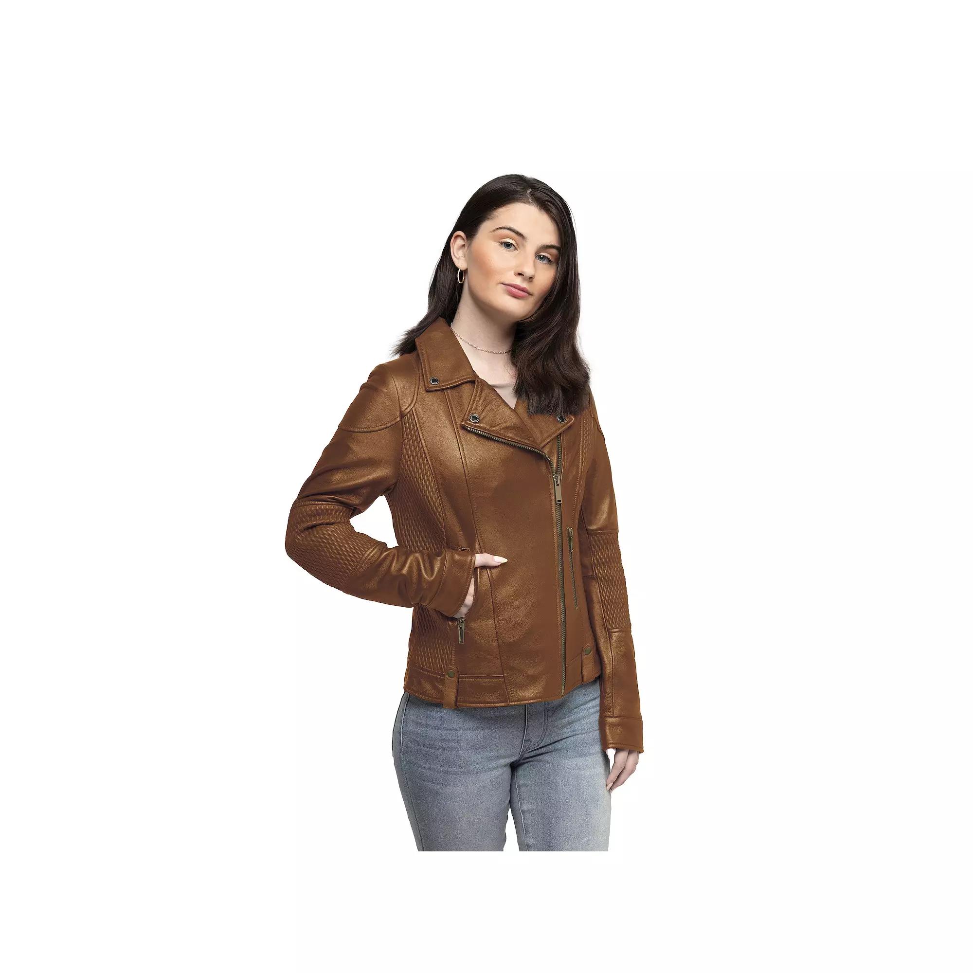 Featuring quilted leather details, this Womens Whet Blu Crossover Leather Jacket makes a bold fashion statement.Click on this WOMENS GUIDE to find the perfect fit and more! Featuring quilted leather details, this Womens Whet Blu Crossover Leather Jacket makes a bold fashion statement. Click on this WOMENS GUIDE to find the perfect fit and more! FEATURES Genuine lambskin leather Water-resistant technology Quilted stretch side panels Two side pockets and two inside Pockets Zipper closure Zipper cuffs Long sleeves Fully linedFIT & SIZING Classic asymmetrical fit with side stretch panels 22 1/2-in. length from shoulder to hem Designed to hit just below the waist Elastic waistband LightweightFABRIC & CARE Lambskin leather Fill & lining: polyester Dry clean Imported Size: Large. Color: Lt Brown. Gender: female. Age Group: adult.