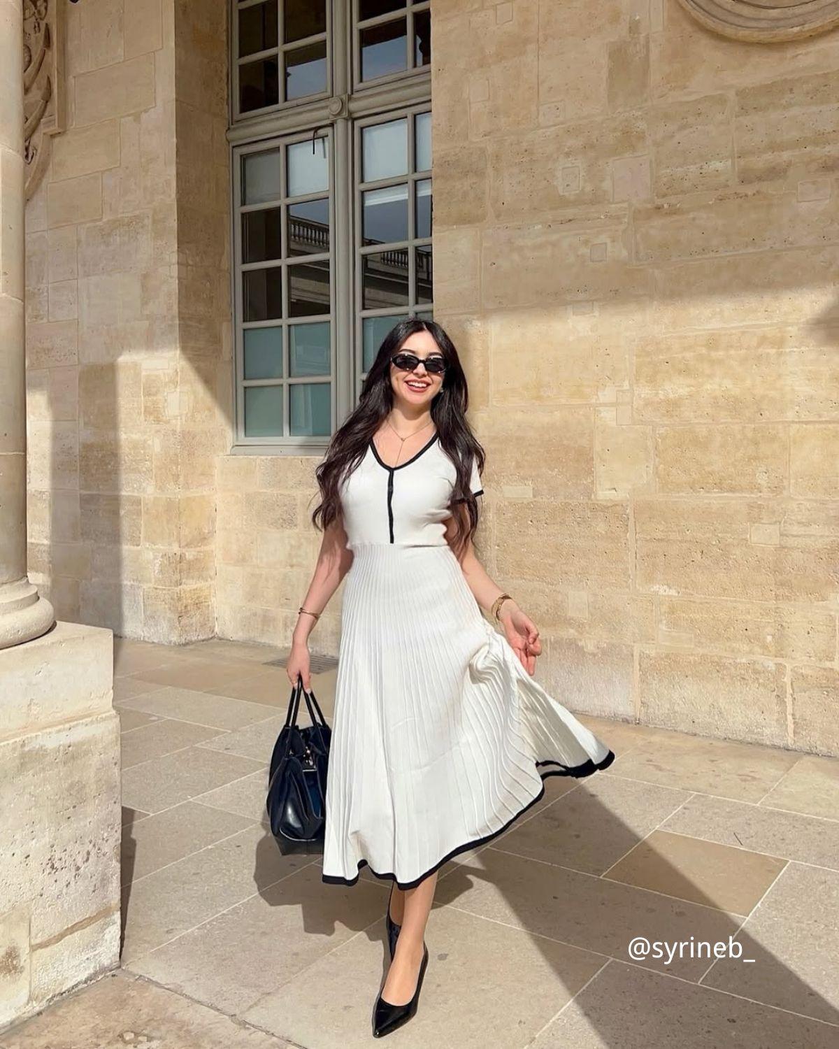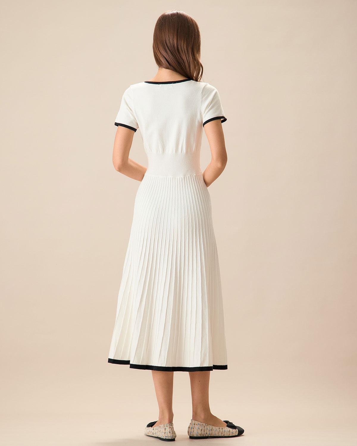 Fabric:This Sweater Midi Dress is made of Viscose, Nylon, and Polyester. Viscose (aka rayon) is a man-made cellulosic fiber made from wood pulp. It's soft, breathable, durable, and moisture-wicking. Nylon is a flexible synthetic fiber, waterproof, and can take rubbing and scraping without wearing away. Polyester is an artificial fiber that feels soft, looks lustrous, and dries fast. Description:Crafted from soft, high-quality knit fabric, this midi dress features a striking contrast detail that adds a modern edge. The relaxed fit and sweater material ensure warmth and comfort, while the midi length offers an elegant, flattering silhouette. Details:- Occasion: Daily- Fabric Stretch: Medium Stretch- Embellishment: Contrasting colors, Button- Silhouette: A-Line- Fabric: Viscose 50.0%, Nylon 28.0%, Polyester 22.0%