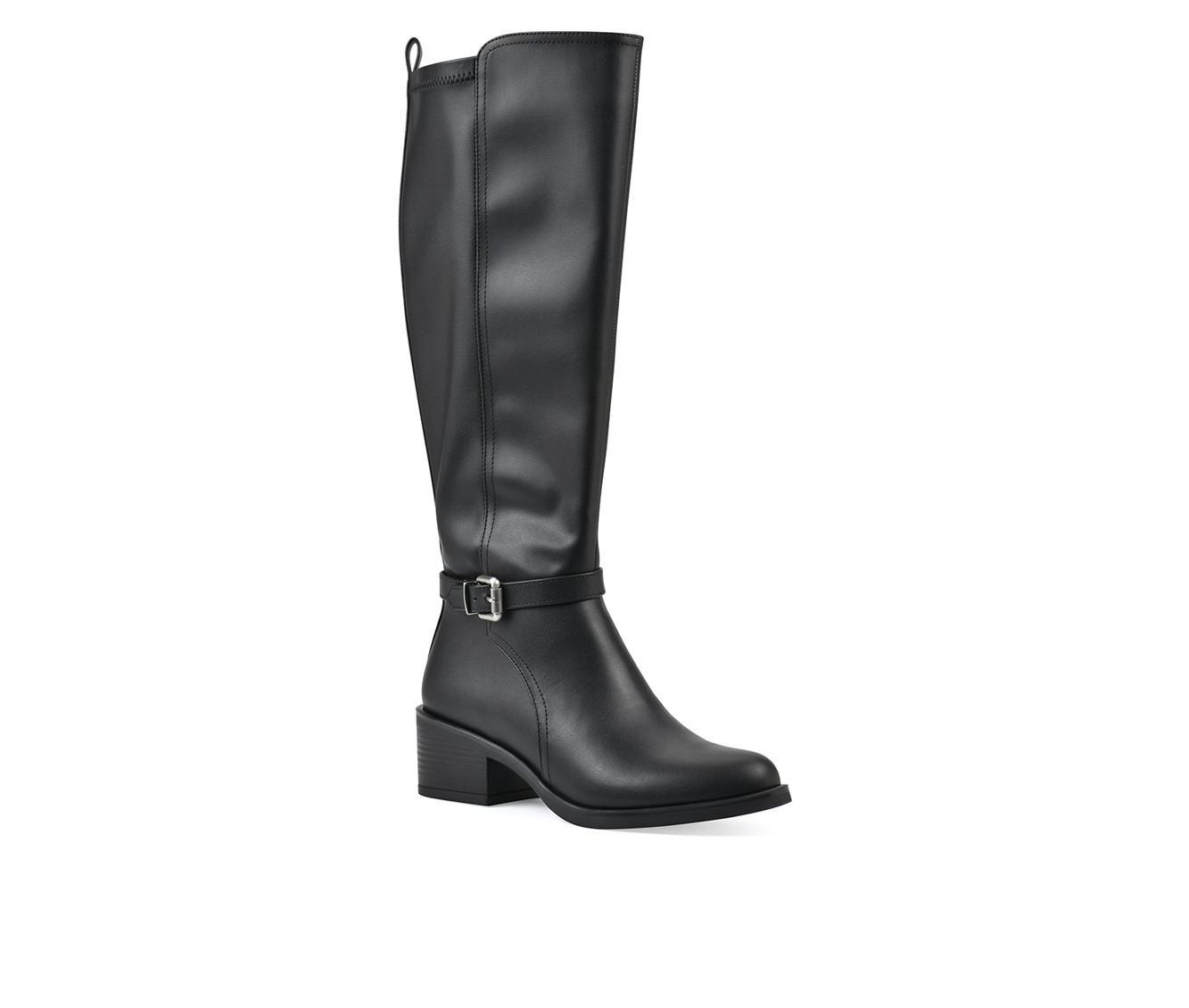 This isn't your everyday riding boot! The Custard tall shaft boot from White Mountain Shoes is all about the details. The inside zipper and stretch back shaft make it easy to slip on and off. Additionally, the snake detailed strap and buckle add a unique accent to a sleek silhouette. This boot is perfect to dress up or down. You won't regret adding the Custard to your ensemble.